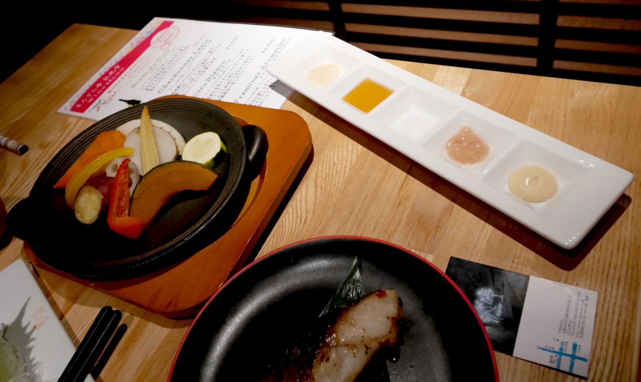 牛すじ肉の西京煮込み750円 烏丸佛光寺どぼ漬け500円 さくさく蓮根ぎょうざ 650円 刺身盛り合わせ2000円 銀だら西京焼き 950円 ゴロゴロ野菜の温サラダ 850円 牛ロースとたっぷり野菜のせいろ蒸し 900円 とりみそと水菜の和風ジャージャーパスタ 950円などなど