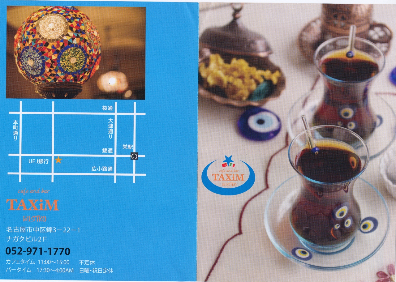 新しく抱いた二軒目の店TAXiM BISTROに案内してくれた.今日は休み.狭い店だがいい場所だ.名古屋国際ホテルのすぐそばだ.今は店主はここを切り盛りし,今までの店は弟のケリムさんに任せているとのこと.