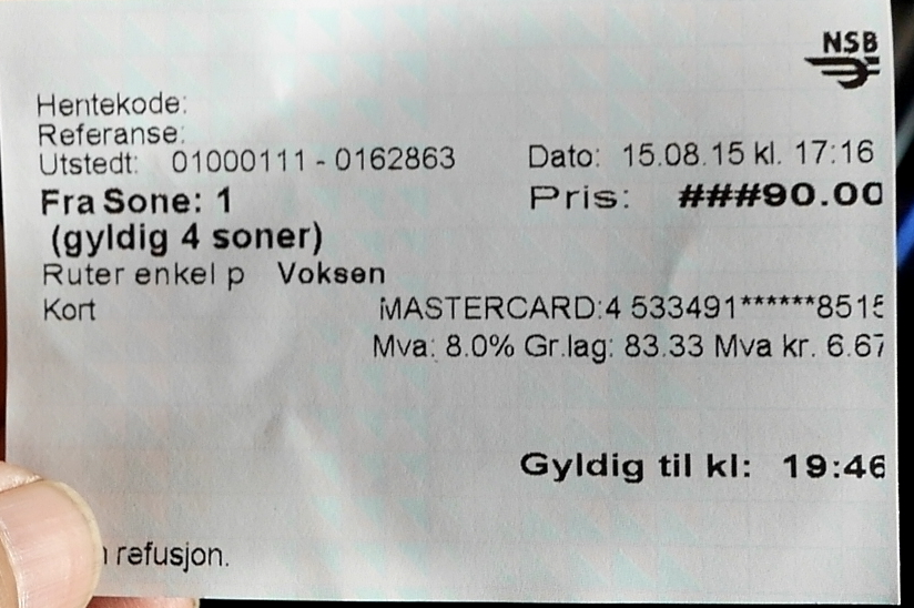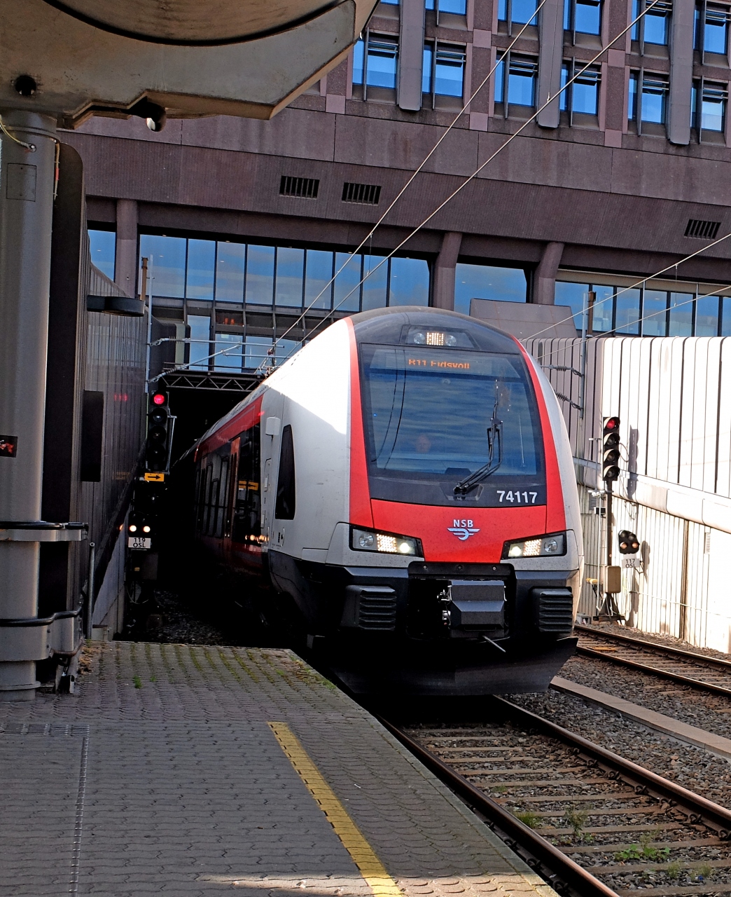 在来線NSBtogの自動販売機を見つけたので切符を買う.90NOKと料金はFlytogetの半分だ!時間は5分程度しか違わない.ちょうど日本人の男性が次の在来線は11番線から発車だと教えてくれた.