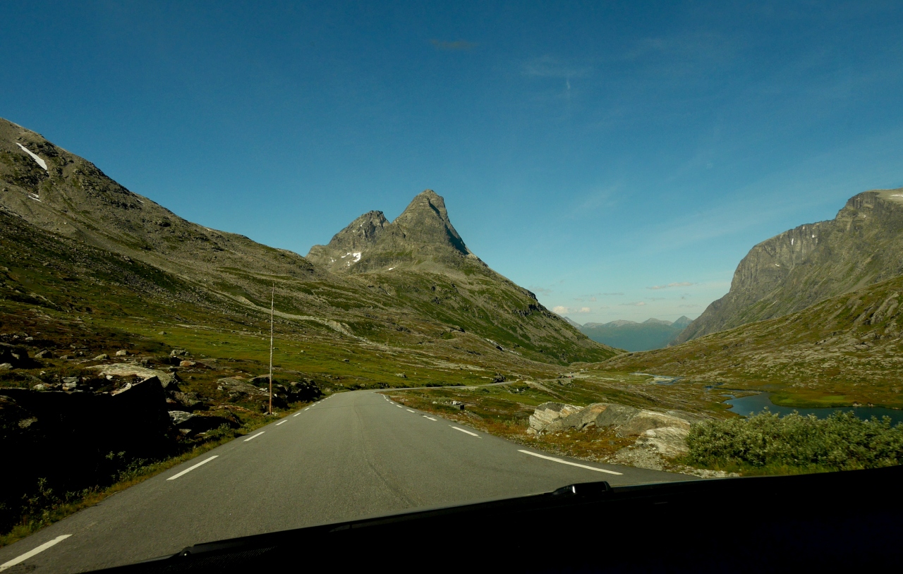 GeirangerからDalsnibba展望台入口のDjupvatnetを通り過ぎ,国道15号線のT字路を左に,全部で30分ほど走るととてもきれいな湖がある.息をのむ美しさだ.レンタカーならぜひ足を延ばしていってほしい