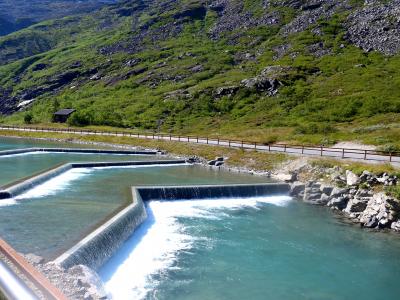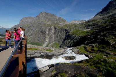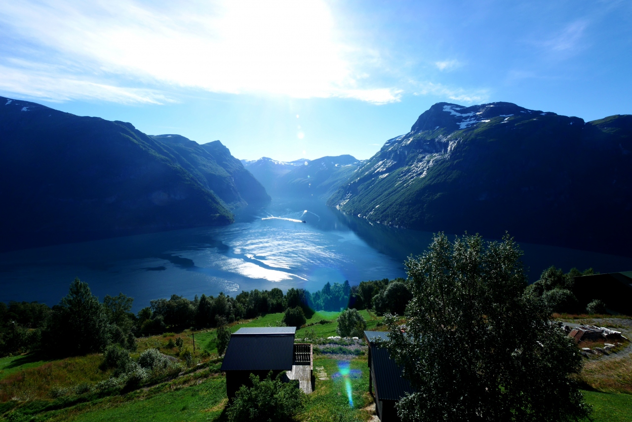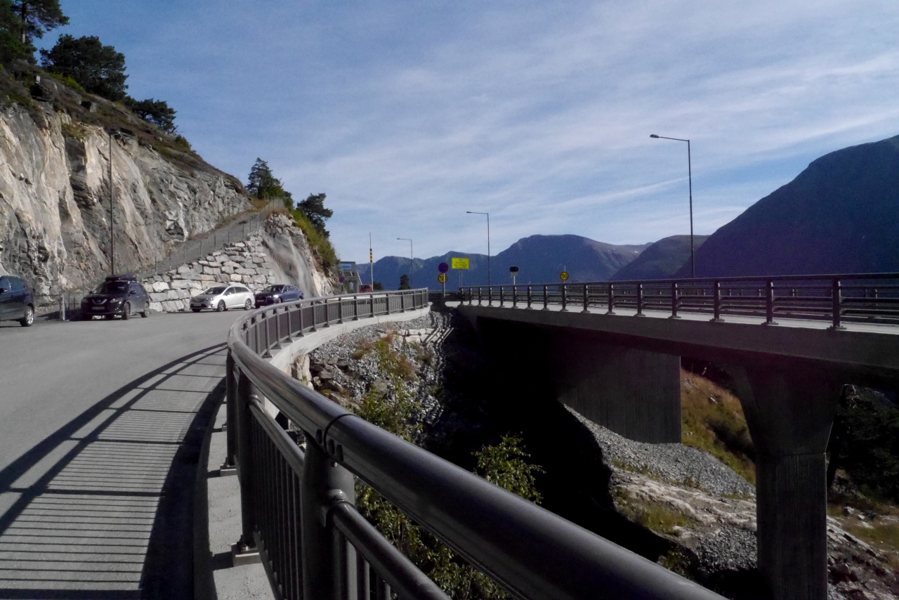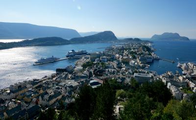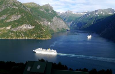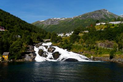 Hellesyltに行ったら,誰でも見るのが滝.なにしろガイランゲルまでのフェリーに乗船する際に目の前に見えるのだから.それでもこれはなかなかいい滝だ!もしレンタカーがあれば車で10分のLjoen展望台も良い.Geiranger方向とHellesylt方向がSunnnylvsfjordenから別れるところだ.私たちは客船の競演を見ることができた
