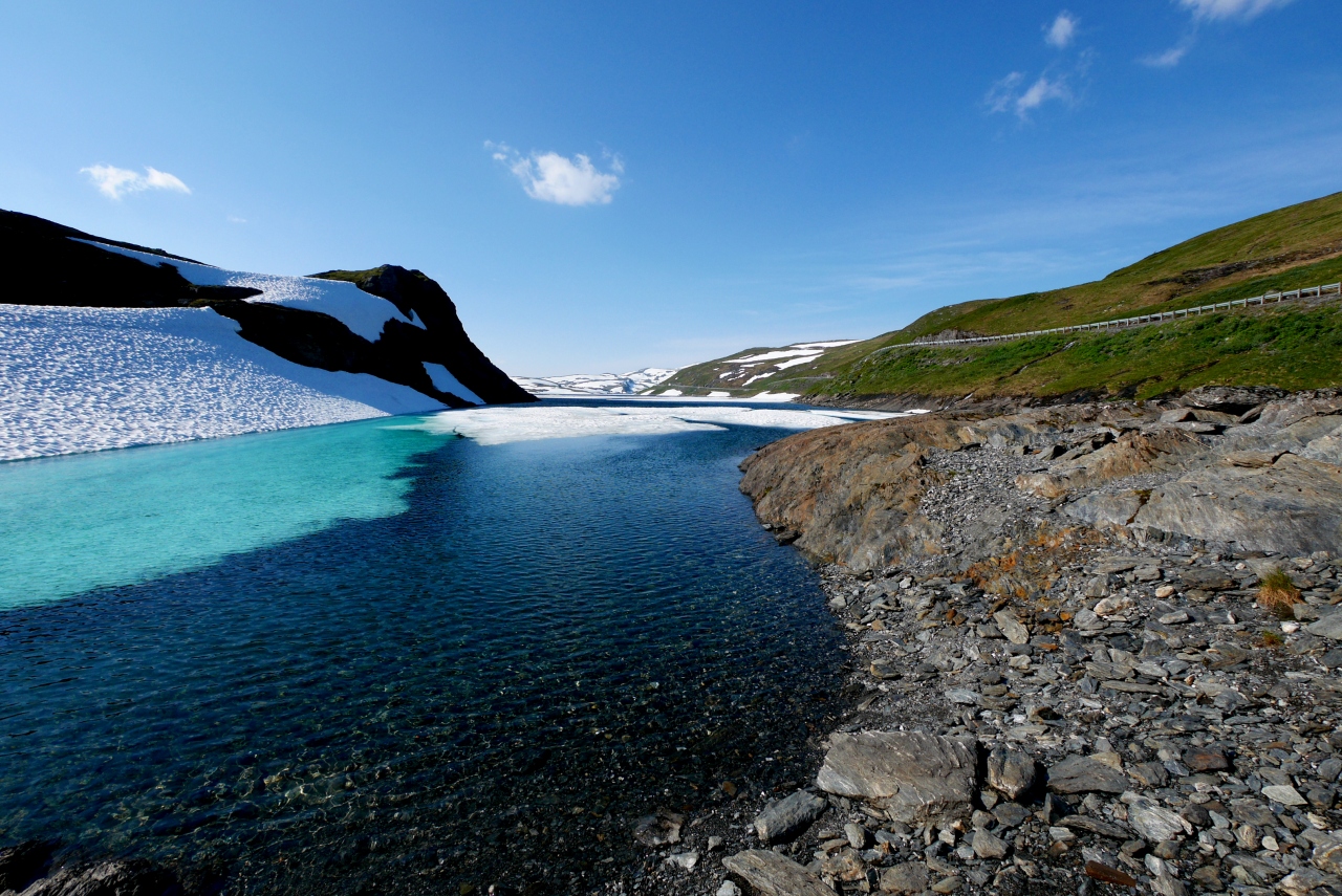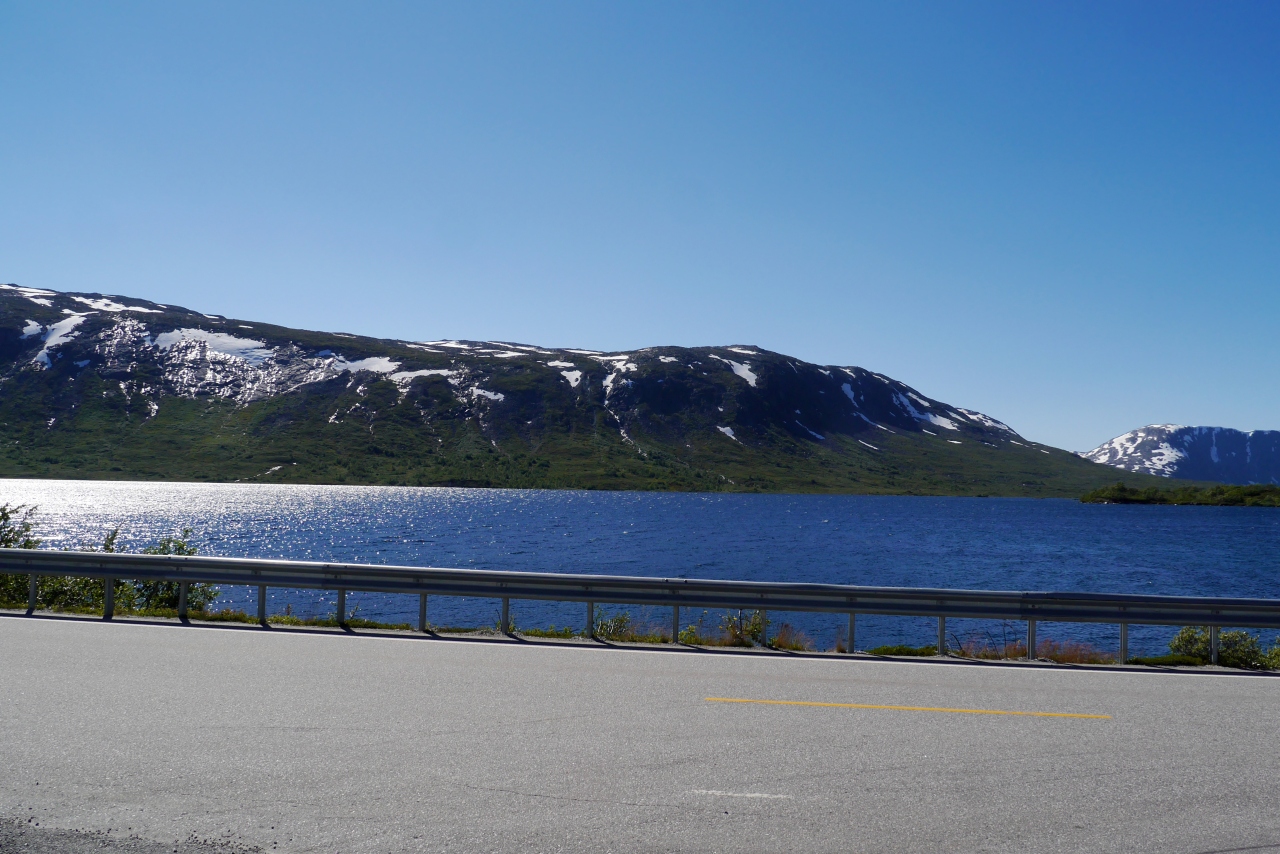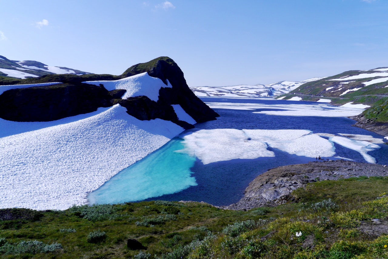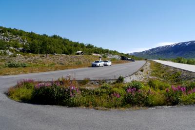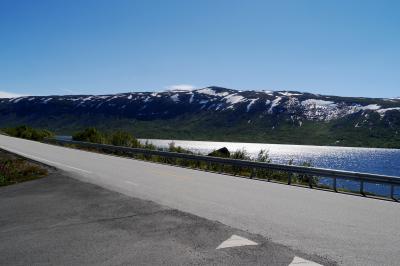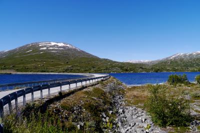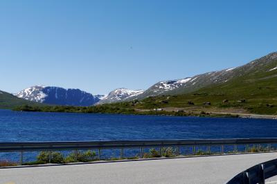 もしレンタカーだったり行動の自由があったら,ソグネフィヨルド近くのとっておきの穴場を紹介!一つがVikafjelletの高原.VossからE16号線でGudvangenへと向かい,途中Vinjeで国道13号線をVangsnes方向へ,途中滝の横を登るつづら折りの道も圧巻.さらに高原に出ると8月下旬でも氷と湖が続く絶景.息をのむ美しさだ.ソグネフィヨルドに来る観光客は多いのになぜすぐとなりのこの高原に来ないのか信じられない.途中サーメ人のお土産屋もある