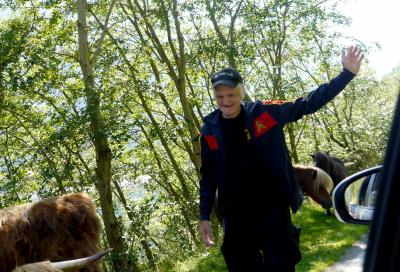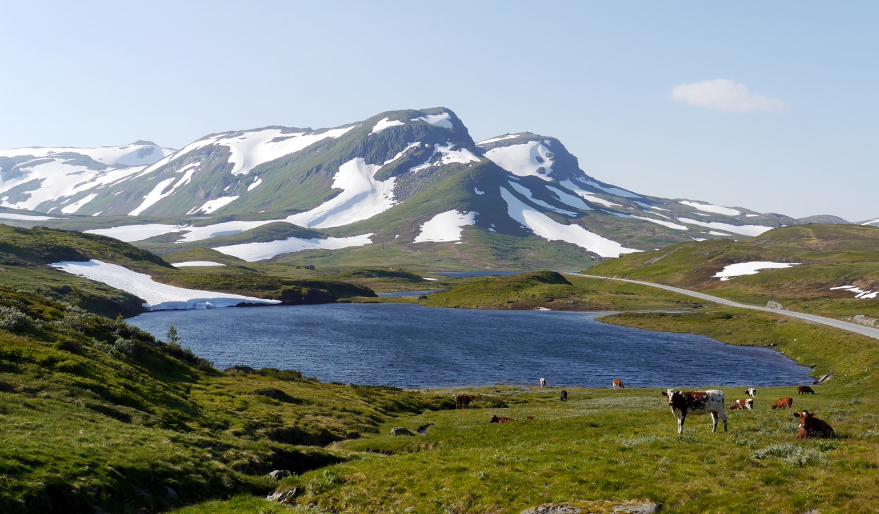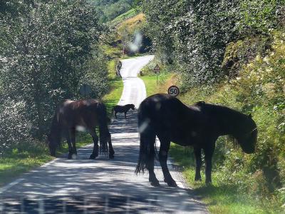 もう一つはGudvangenからEV241号線をNeroyの集落へと行く道.牛やロバが道を通せんぼするのどかな道.フィヨルドの上にある集落を訪ねるのも面白い.これらは