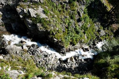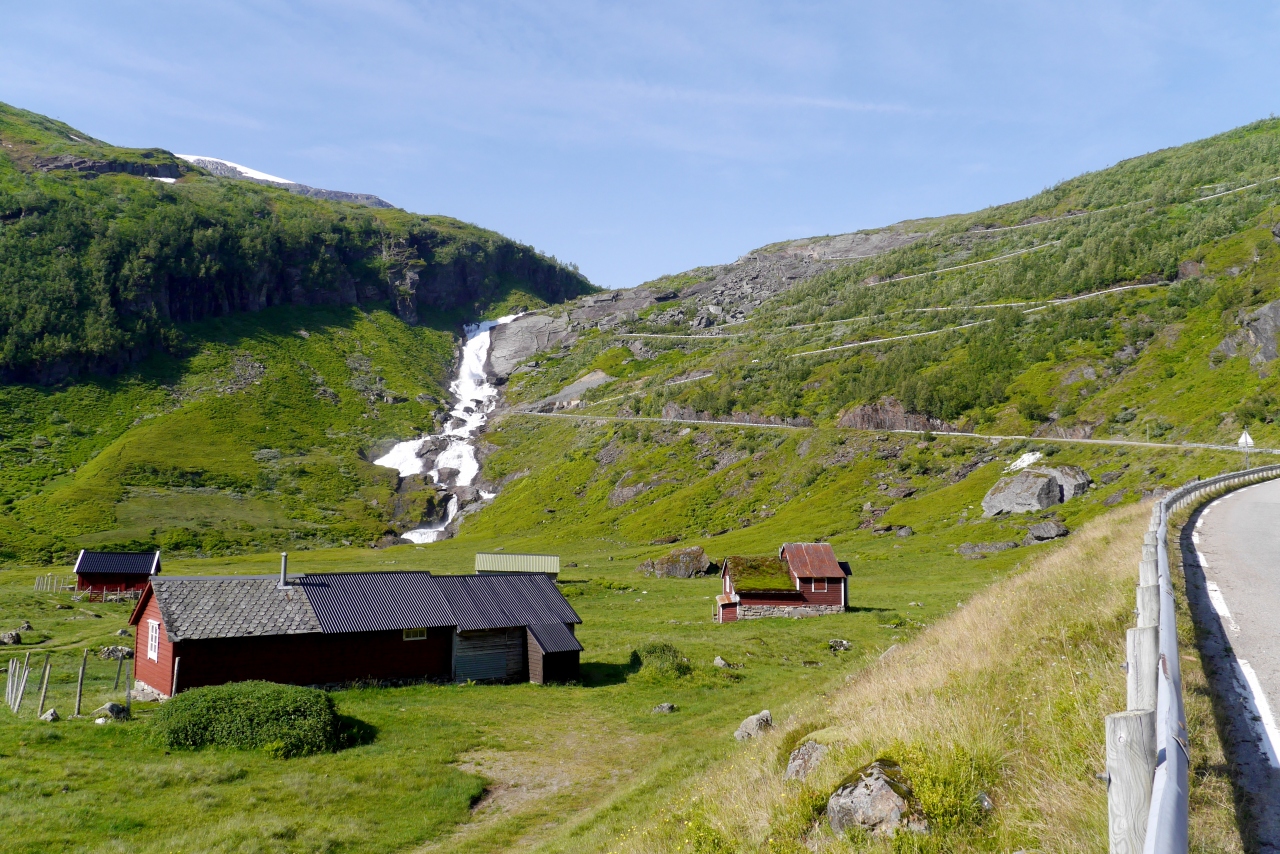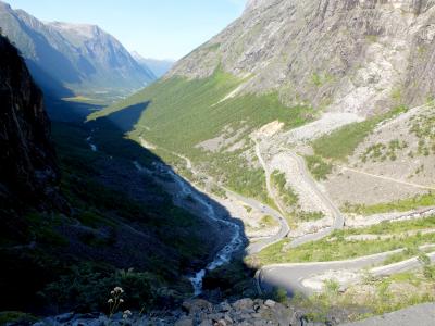 ノルウエーフィヨルドドライブ1700? 40-Vikafjelletの絶景2,Skjelinga湖,Kvassdalen,滝とつづら折りの道