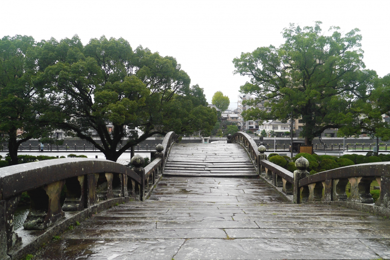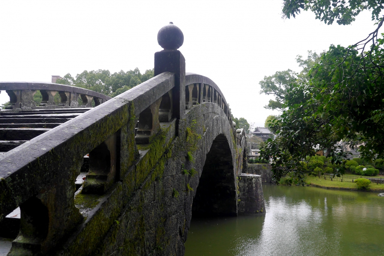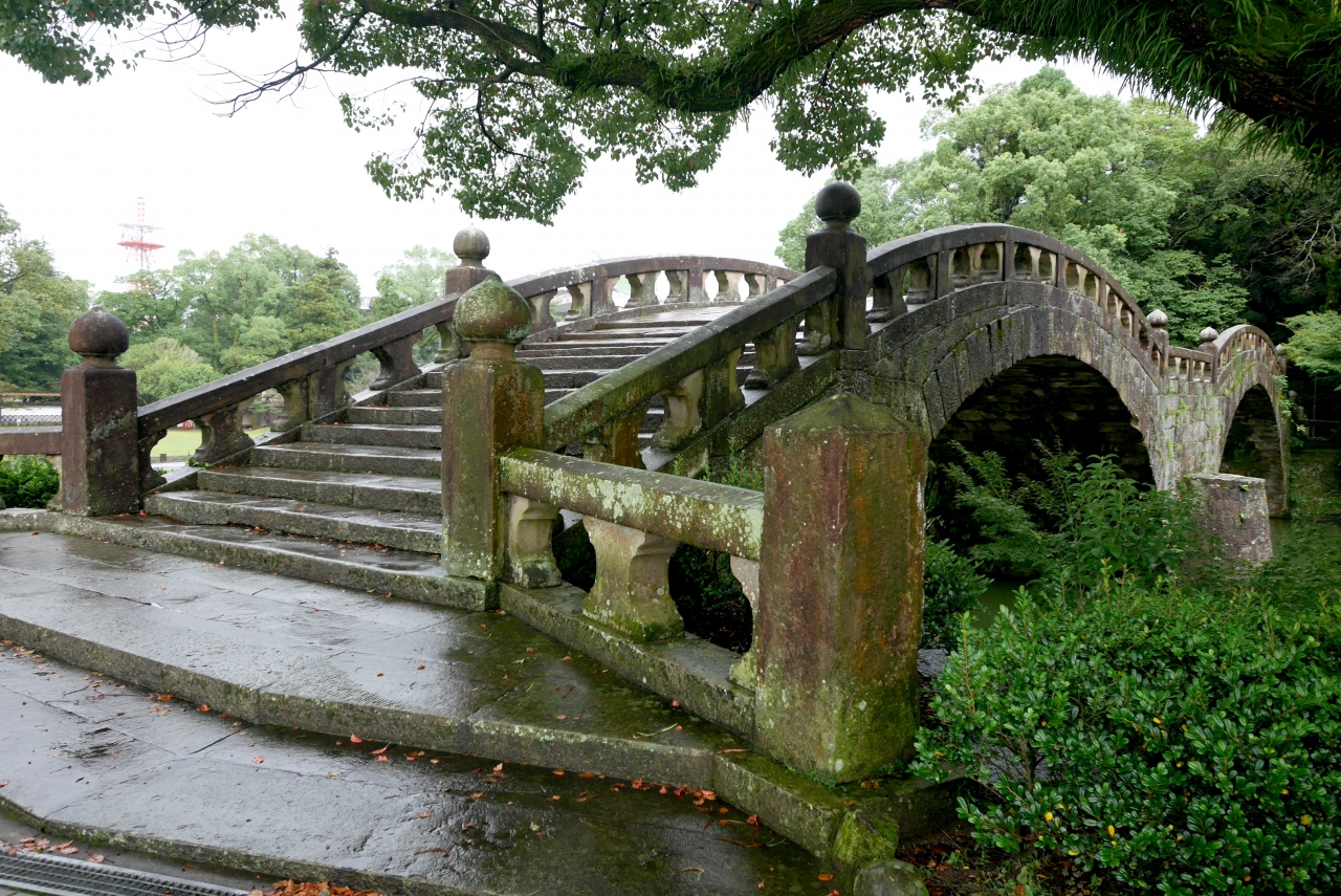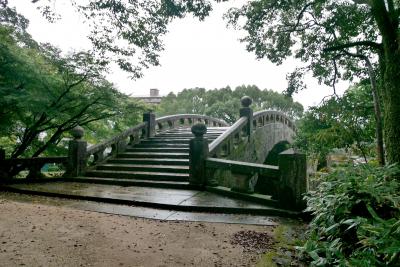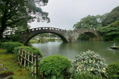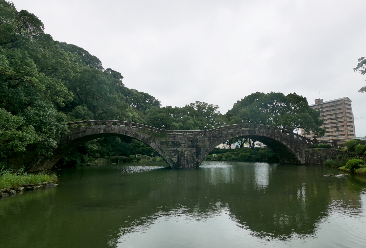 眼鏡橋は長崎より大きくすばらしい.この間八女でたくさんの石橋を見た後だったので感慨無量だった.もっとゆっくり滞在したかった.「1957年(昭和32年)に起きた諫早大水害では、死者・行方不明者580人以上の犠牲者が出た。眼鏡橋は欄干の一部が損傷しただけだったが、眼鏡橋がせき止めた流木やがれきが、水の流れを変え、被害を拡大したとの指摘がなされた。水害後の復興策では川幅拡張工事に合わせ爆破解体する案も浮上したが、当時の野村儀平市長らが街のシンボルかつ文化財として保存することを強調、さまざまな働きかけで1958年(昭和33年)、日本の石橋として初めて国の重要文化財に指定された。このため、1959年(昭和34年)から1960年にかけて諫早公園への移設工事が行われ、今日も美しい姿を水面に写している」運転手さんは「恨みの橋」といっていたが,この橋を残した英断は恨みの橋といえども,やはりたたえたい.水害の犠牲者の方々の冥福をお祈りいたします.