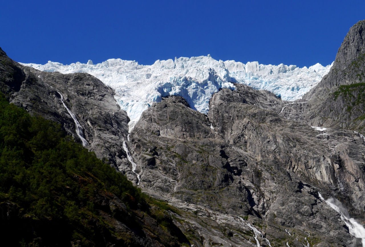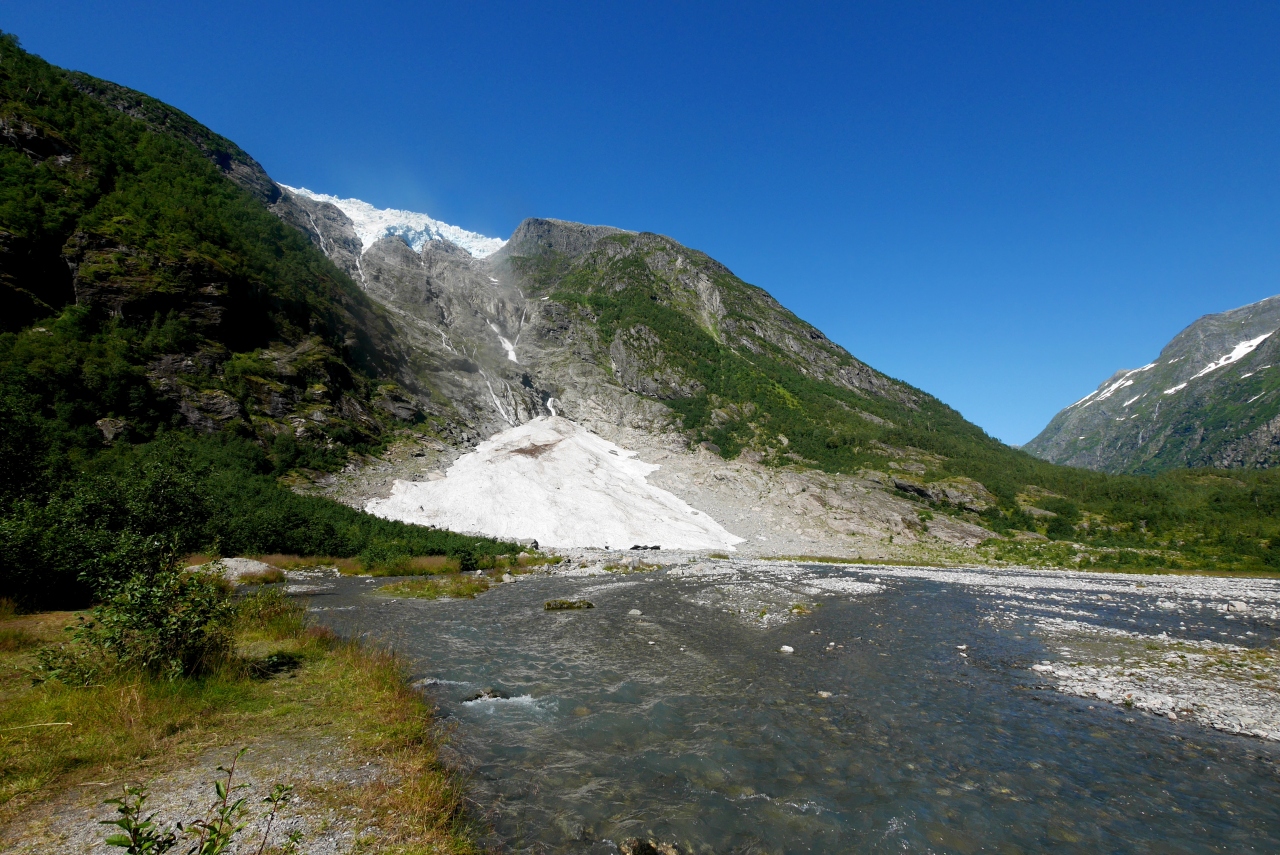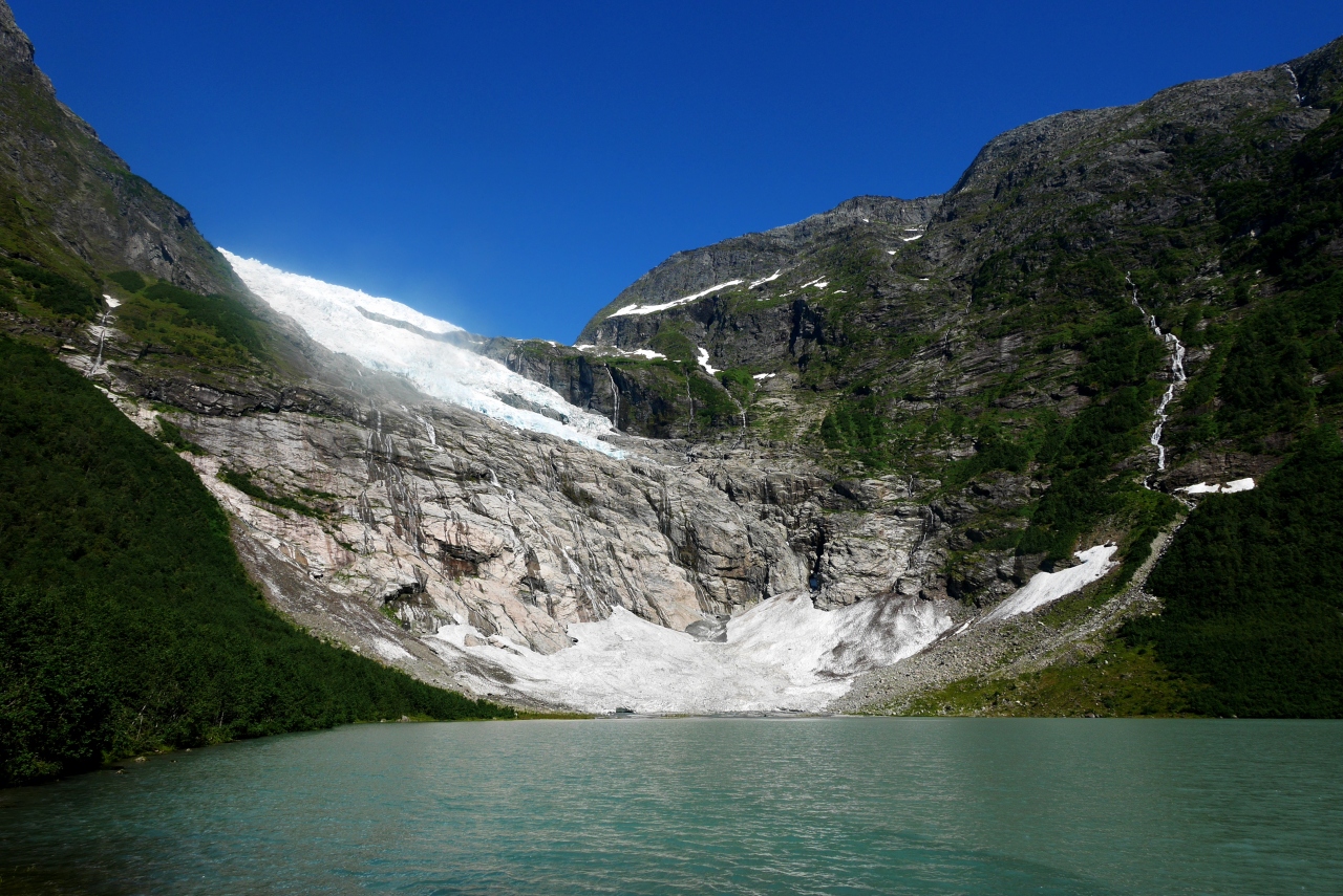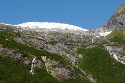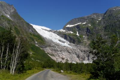 ヨーロッパ最大のヨステダール氷河の腕の一つがBriksdal氷河だし,ここに紹介するBoya氷河やSuppelle氷河だ.最も厚いところで600mの厚さがあるとのこと.地球温暖化でまた急速に失われている.ソグネフィヨルドの奥に位置する,地方道5号線でSogndalsfjoraから40km,車で40分.