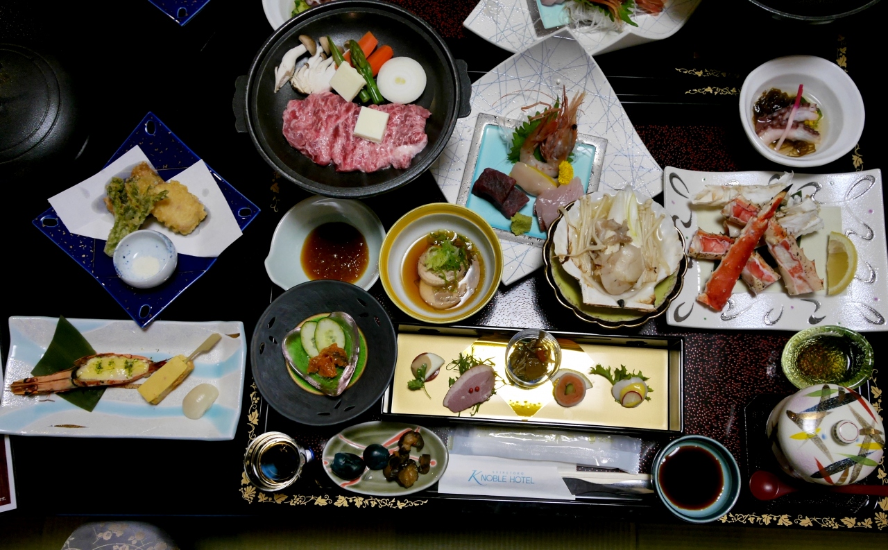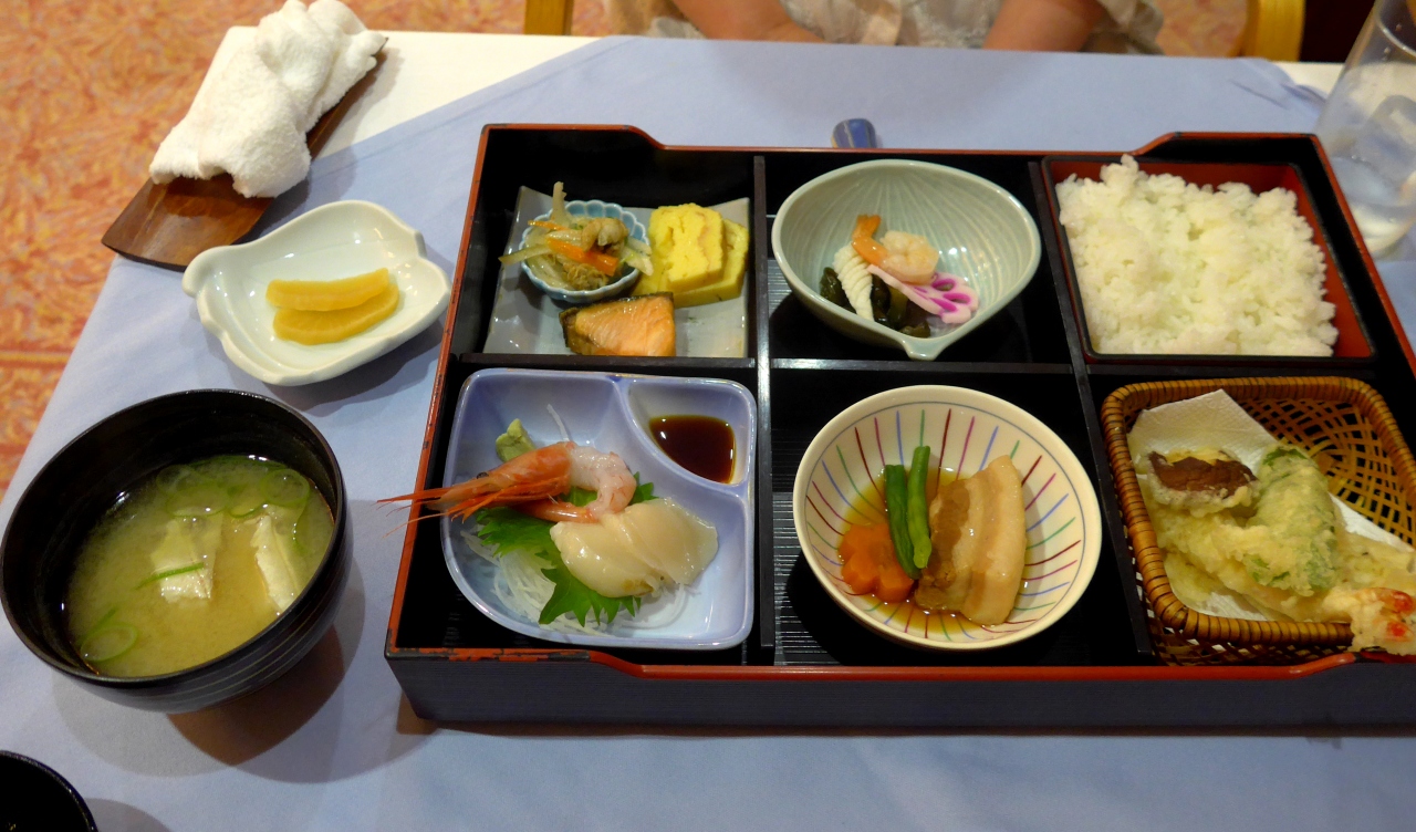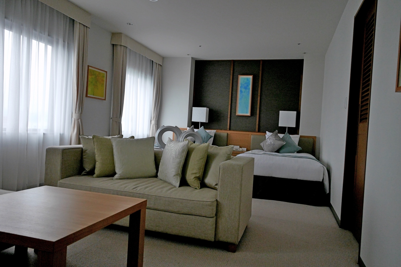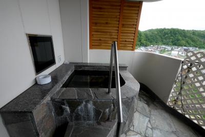 オーシャンビュー特別室 露天風呂付き客室(海側)2人で41400円と少しお金が張った.部屋は広くて畳付き,露天風呂は若干小さいがいつもお湯がきていた.朝はいるのが気持ちいい.私は夜は大浴場のサウナ,朝に露天風呂とした.朝でもぬるくなっていない.夕食は一見豪華だがあまり特徴はなかった.朝食はリゾートホテルの並みの水準.可もなく不可もなしというところ.景観はオーシャンビューといってもあまりよくない.まあ宿泊してもいいかなというところ