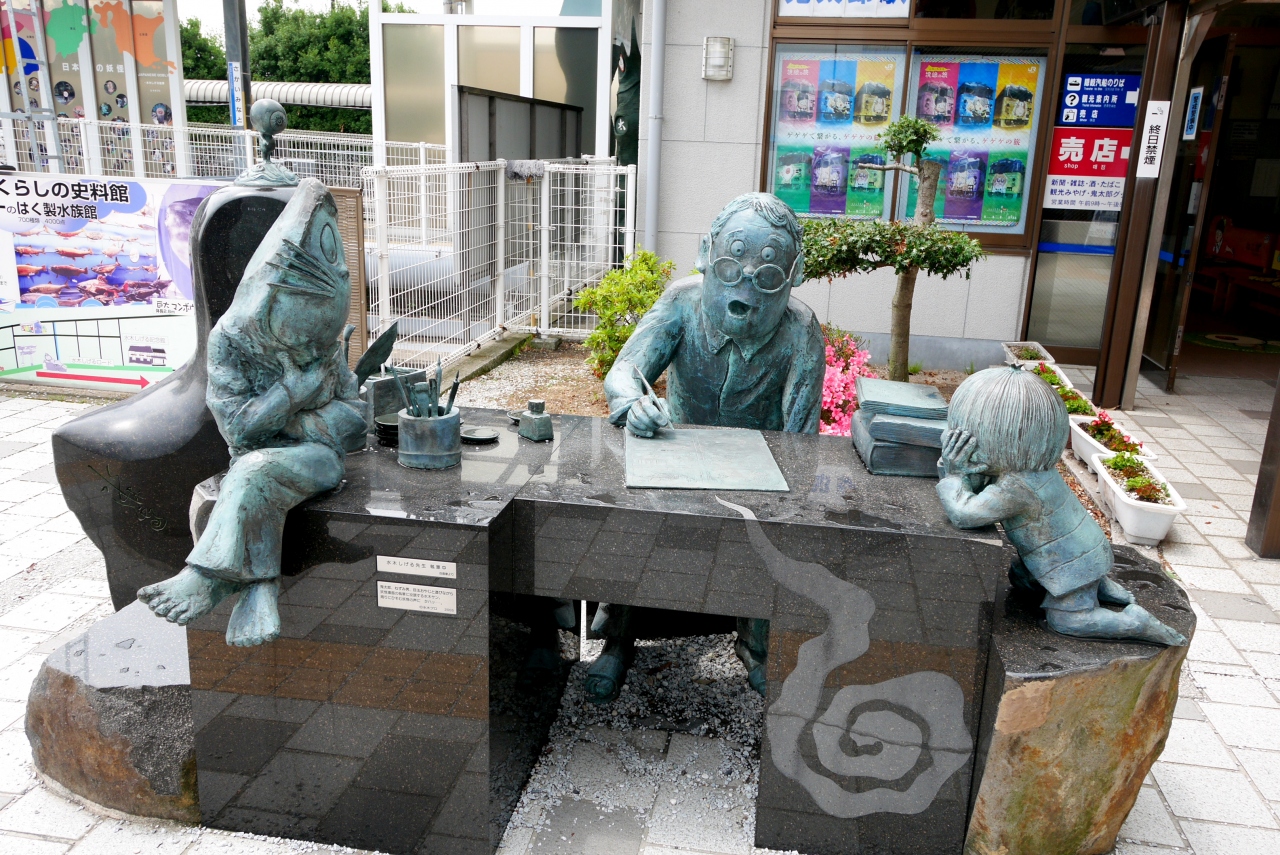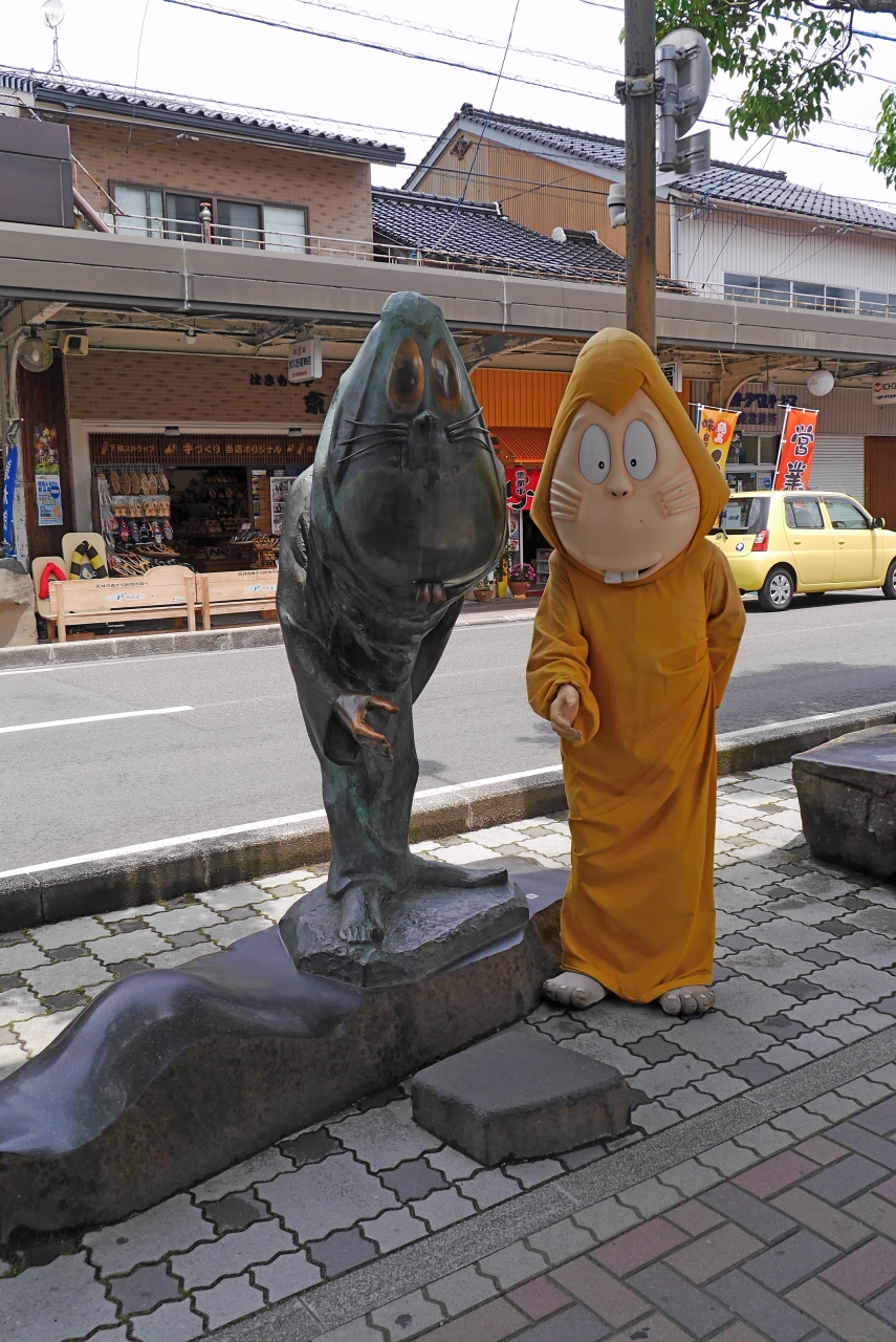 2007年,まだ国内ブログを作る前に出張で来たことがある.その時も「水木しげるロード」はあったし,いくつかのキャラクターはあったが,2010年に「ゲゲゲの女房」が放映されてから,一大観光地となったようだ.アニメキャラクターで町おこしを行うところは多いがどうせやるならここまで徹底すると気持ちがいい.列車から街並みまで水木ワールド.彼の妖怪キャラはなんとなく愛らしいのとやはり日本の風土の中で伝承された「お化け」「異形」をもとにしているからかもしれない.