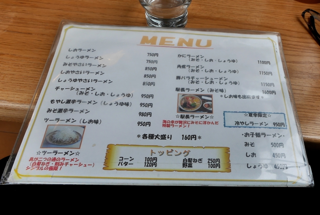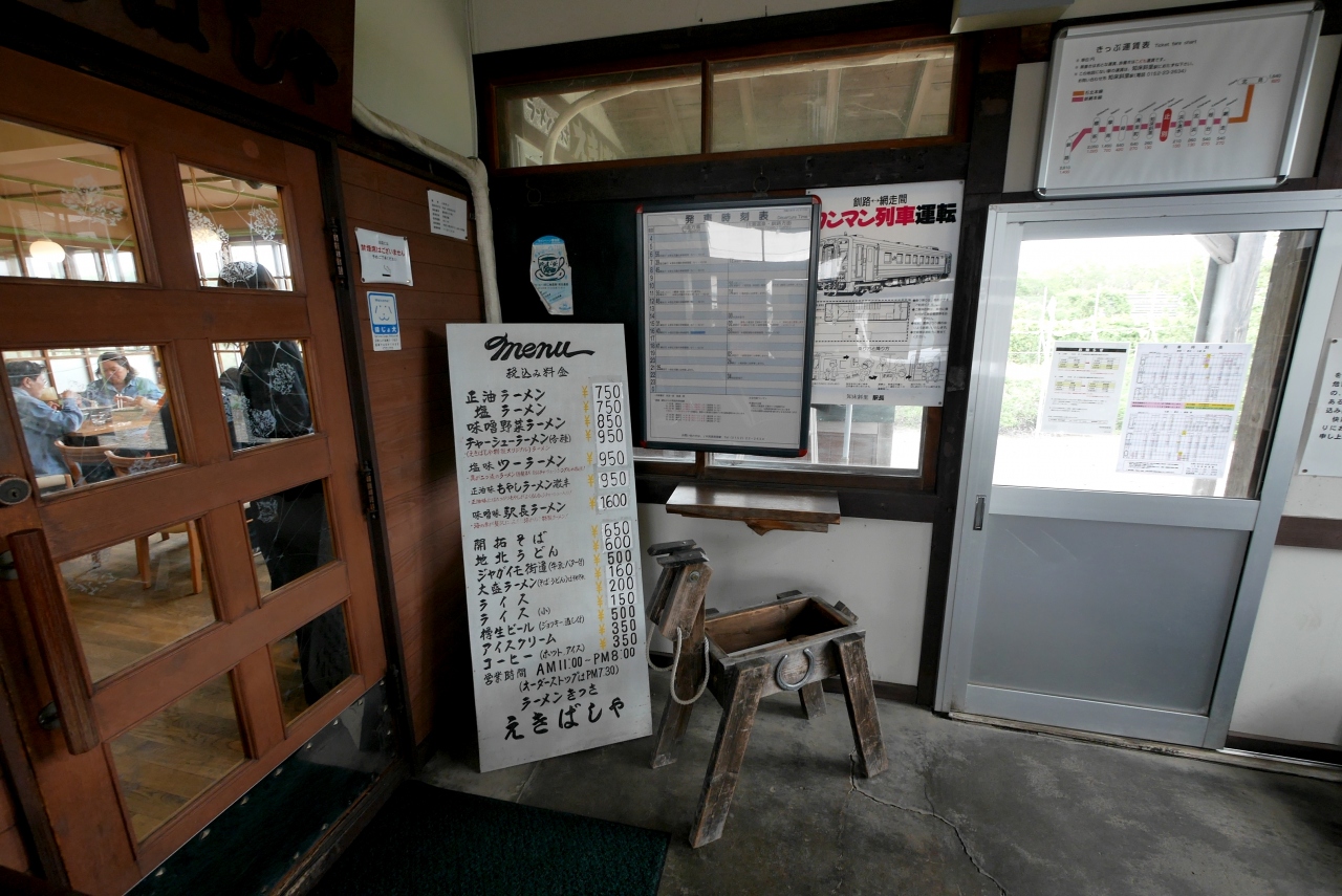 止別駅にある. ラーメンきっさえきばしゃで昼食 結構込んでいた.家人はしょうゆラーメン,私はみそ野菜ラーメンを食べ,白髪ねぎをわける.みそ味が野菜と合ってとてもおいしかった.駅にあるのもノスタルジックでいい.わかりやすい場所にあるし,ドライブの途中でよるのもよい