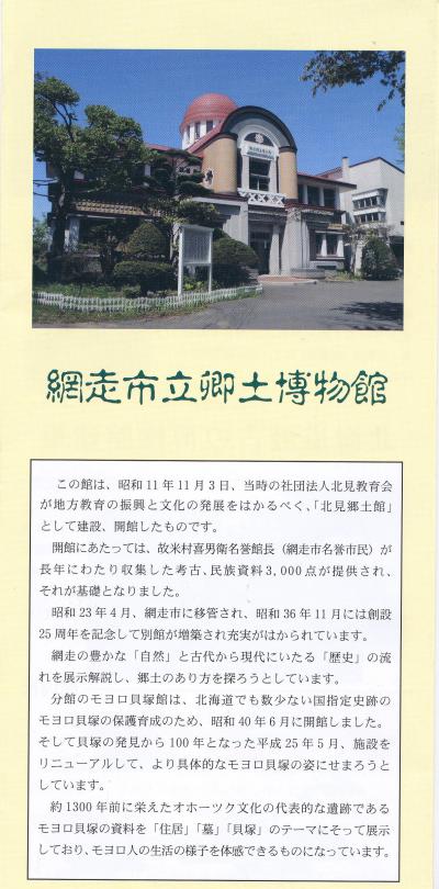 丘の上にあるレトロな博物館.分館であるモヨロ貝塚館はオホーツク文化について最新の展示をしているし,北海道立北方民族博物館にも詳しい.それに比べるとレトロな展示.想像図などについては現代科学では少し修正が必要かもしれない.しかし昭和の重厚な香りがする博物館で,手書きの説明もある展示を見ていると,古き良き博物学らしい雰囲気を味わうことができた.友の会活動も盛んで,土曜午前中ということもありたくさんの人が来ていた.建物だけでも一見の価値あり