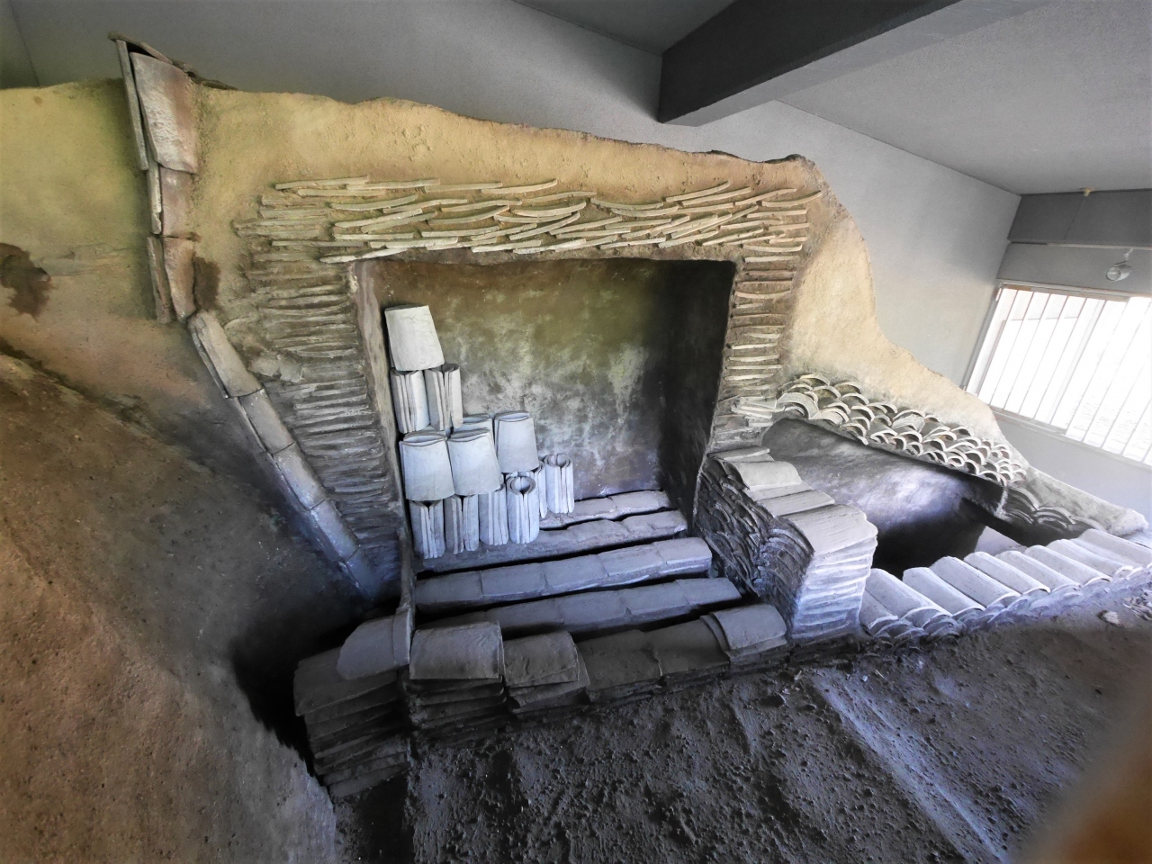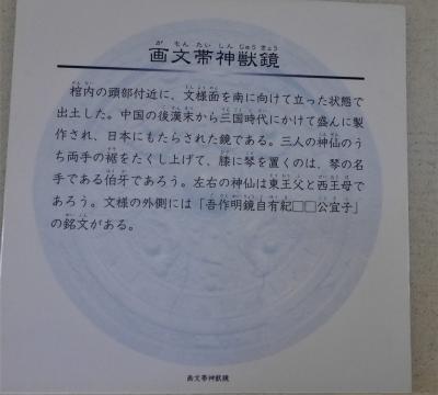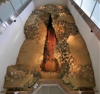 以前月曜日で入れなかった資料館.今回リベンジ.想像以上に良い資料館だった.箸墓古墳と同じ最初期の古墳.箸墓の1/2で作られている 西暦260年すぎの造営だとのこと.全長134m 平成9,10年の調査で竪穴式の石室があきらかになる.地震による崩落があったため盗掘されなかった.33面の銅鏡がみつかる.その多くを展示,石室の模型もすごい.
