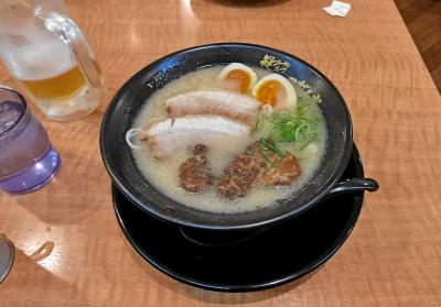 今回は豚骨Wチャーシュー麺味玉入り 1100円にした.確かにチャーシューは2種類入っていて,肉片のほうがおいしかった.豚骨スープも濃厚だが癖が強くなくおいしかった.麺も細麺でばりかたにしてもらったがこしがあっておいしかった.