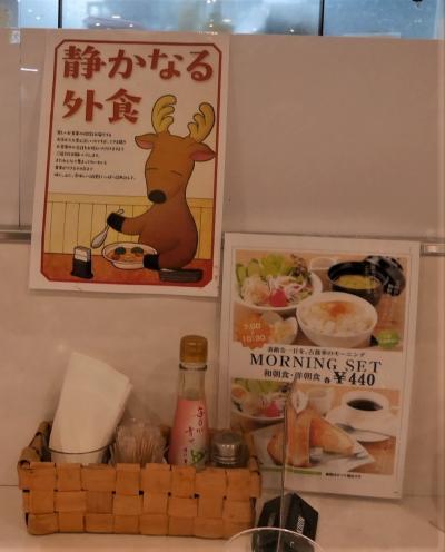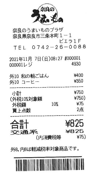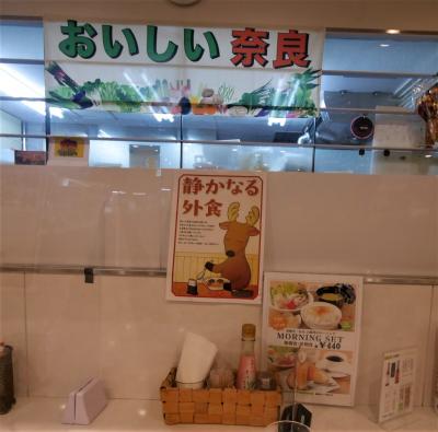 駅構内の「奈良のうまいものプラザ」のなかにあるレストランで400円の朝食を食べる.ごはんとみそ汁,生卵,サラダ,おしんこのシンプルな朝食.しかし生卵がおいしかった!サラダもまあまあのボリューム.どうしてもコーヒーを飲みたかったがこれは高かった.350円しかたない.あわせて750円.税込みで825円!10%の消費税って高いね!