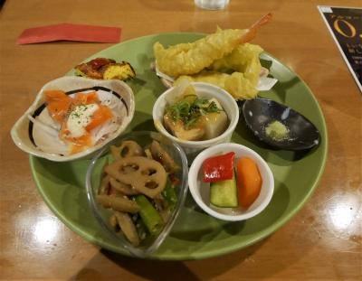 生中 500円 税別 バーニャカウダ 780円税別 野菜がおいしいし,バーニャカウダーとは「熱いソース」という意味.味が濃すぎる場合が多いが,ここのはちょうどよかった.揚げ茄子 380円 外税 結構ボリューミー 選べる夕ごはん グラスワインセットでメインデッシュはチキン南蛮にした.これは税込みで2000円 ワインはミディアムで可もなく不可もなしというところか- 旅行時期