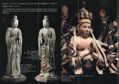 「保存修理及び耐震化工事の為、令和2年7月1日より約3年間拝観受付を一時停止しています。この間、塑像四天王像は東⼤寺ミュージアムにて拝観できます。」とホームページに書いてある.他の仏像や宝物も含めて600円でみられるのはとてもうれしい.戒壇堂では上段に会ってよく見えなかったが,この展示ではよくわかる.これらの塑像,思ったより小さく感じた.しかし広目天をはじめ,人間の内面をえぐるような高い精神性をもった仏像だ.執金剛神の模像も見ることができるが,なんか彩色を復元するとやや陳腐化して見えるのは私だけだろうか,