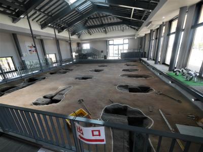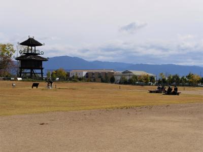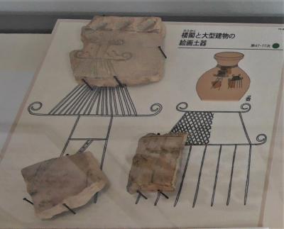 ひろい公園だ.環濠の広さもよくわかる.ここに900人もの人が最盛期住んでいたと すごいねえ.それだけの生産力があったんだ.絵画土器がたくさんあるのでそれを基にした楼閣が唐古池に立っている.唐古池は江戸時代のものだが結構しっくりくる感じだ.遺構展示情報館は道の駅の隣なので,史跡公園駐車場でなく,短時間なら道の駅の駐車場からのほうがずっと近くで便利だ.史跡公園駐車場からは徒歩8-10分かかる.この巨大な日本有数の弥生集落の蓄積が,纏向遺跡を中心とした王権につながっていくのだろう.一度は訪れたい史跡公園だ.