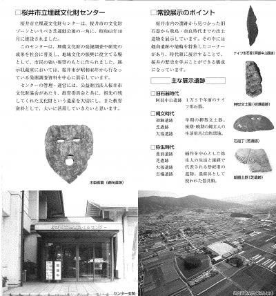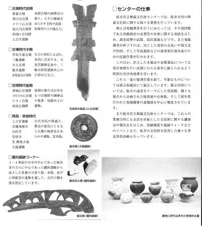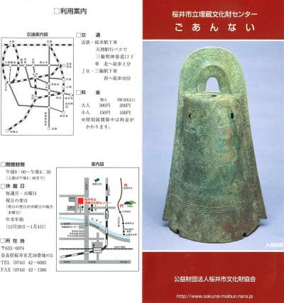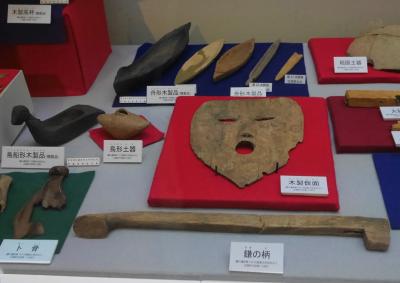 桜井市立埋蔵文化―センターによる.さすが日本の王権の「ふるさと」の市のセンターだ.旧石器時代から飛鳥・奈良時代まで展示.特に纏向遺跡の遺物が圧巻だ.今回特別展として「上之宮遺跡」展を行っていた.聖徳太子の時代の遺跡だ.鍬を木製仮面にするとは,祭祀に使うとして呪術的な意味があったのかなあ.埴輪も含めて展示はなかなかだった.入場料300円