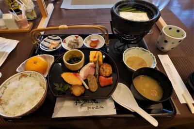 朝食はビュフェ方式でなく定食方式.エスプレッソダブルを注文できたのには感激.ジュース,パン,ヨーグルト,果物が共通で,後は和朝食に.焼き魚がおいしかった.京都らしいおばんざい風にしつらえていた.大満足.5つ星らしいホテルに宿泊したという実感があった.- 旅行時期