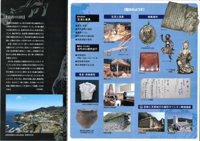 入場料310円 ド・ロ神父記念館と共通 1階が生活と道具 農具や池島炭鉱の資料 石積み景観について 先史時代の土器など 池島炭鉱の最盛期と閉山のビデオがよかった.日本の高度経済成長を支えた炭鉱だ.1959年に開始,2001年に閉山.日本の変遷を見るようで感慨深い.二階は隠れキリシタンなどの資料 信仰を続けられるよう激励するような「バスチャンの日繰り」など.