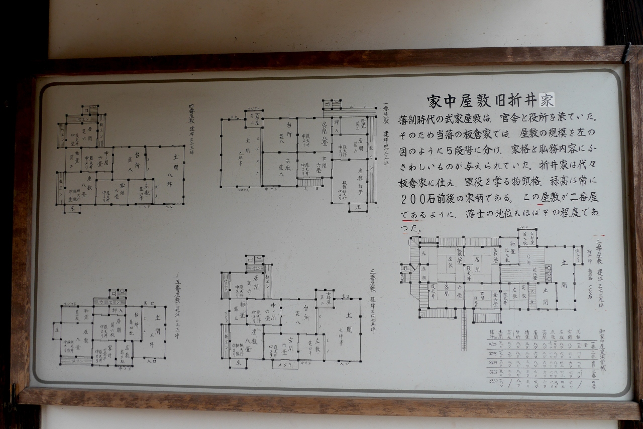 武家屋敷が二つ公開されているが旧埴原家は藩主勝政公の生母の実家であり,上級武士,玄関に式台もある.質素なつくりだが,日本家屋の特徴がよく出た造りだ.庭もこじんまりしているが美しい.一方の旧折井家は中上級武士の武家屋敷との比較も面白い.