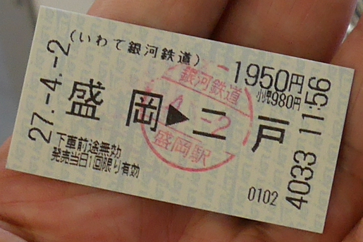 また盛岡二戸間1950円は高い!新幹線の乗車券が以前のJRの料金だが,1140円だ(もちろん特急料金別).ずいぶん高くなったものだ!新幹線は地元の人には善し悪しだ.- 旅行時期