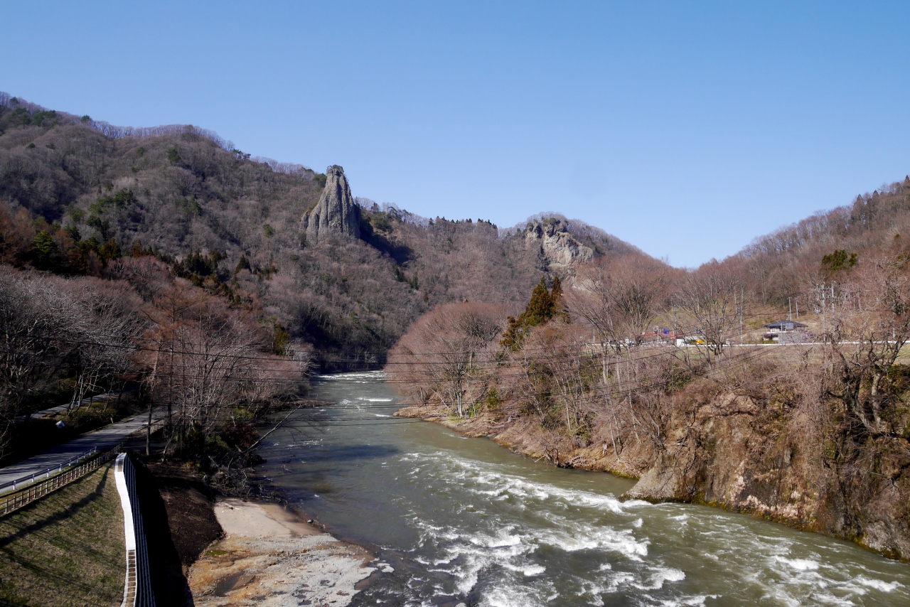 展望台からは女神岩は見えない,馬淵川の県道6号線希望大橋からがよく見える