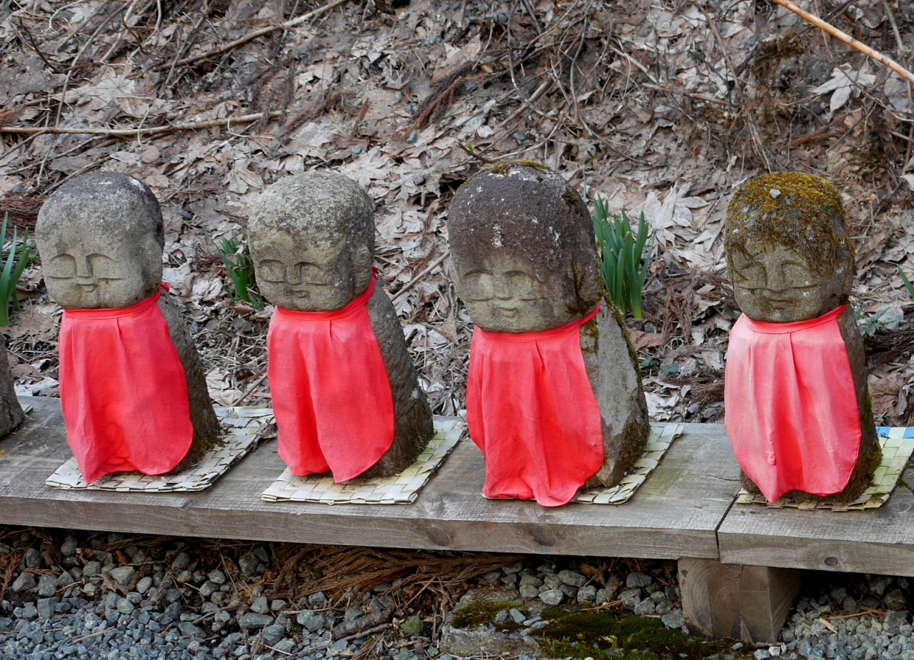 本堂は工事中だが,収蔵庫の仏像が素晴らしい.山におかれたお地蔵様も愛らしい