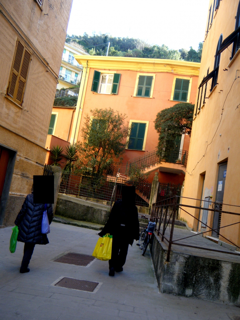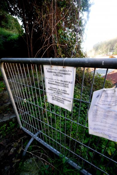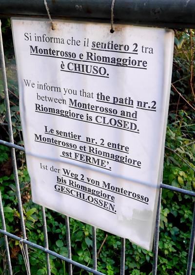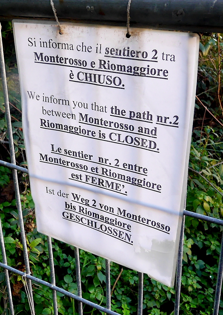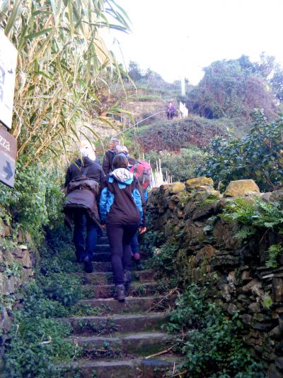 どうしてもVernazzaへの,Trailに行ってみたくて,タウンホールの後ろに行ってみる.案の定,昨年の水害で通行止め.イタリア人の集団が登って行ったので,私たちも少しのぼることにした.Trailは狭く,割と険しい.しかしMonterossoの町やTorre Aurora,S.Francesco教会,Castello,そして鉄道の線路,港と砂浜が全部見える!これは絶景だ!今は通行止めだが,開通したら絶対お勧めだ.町を見学した後登ってみたらよい.