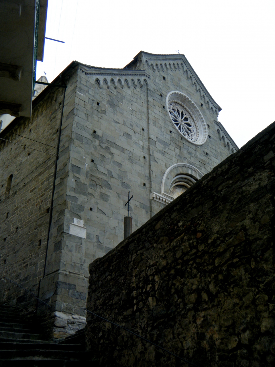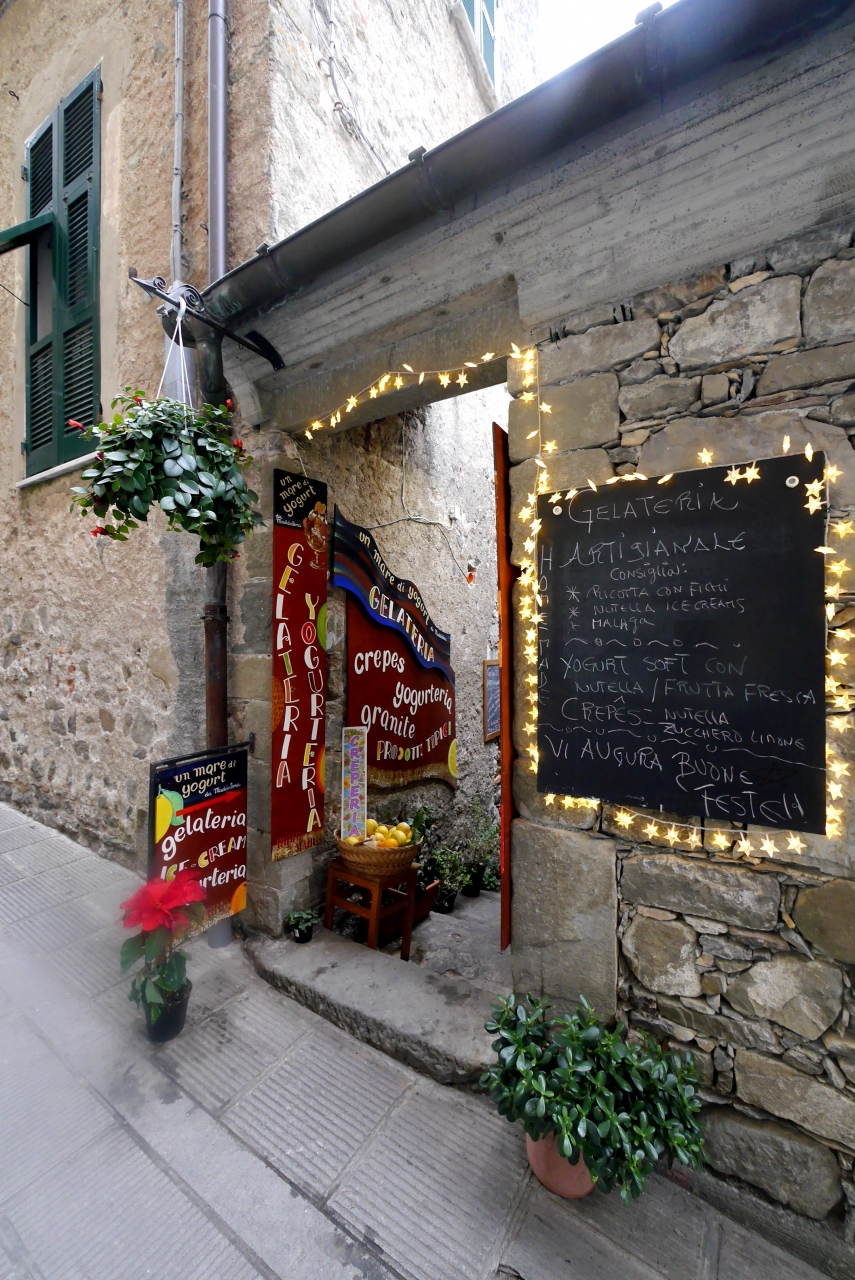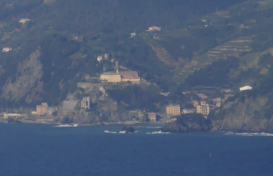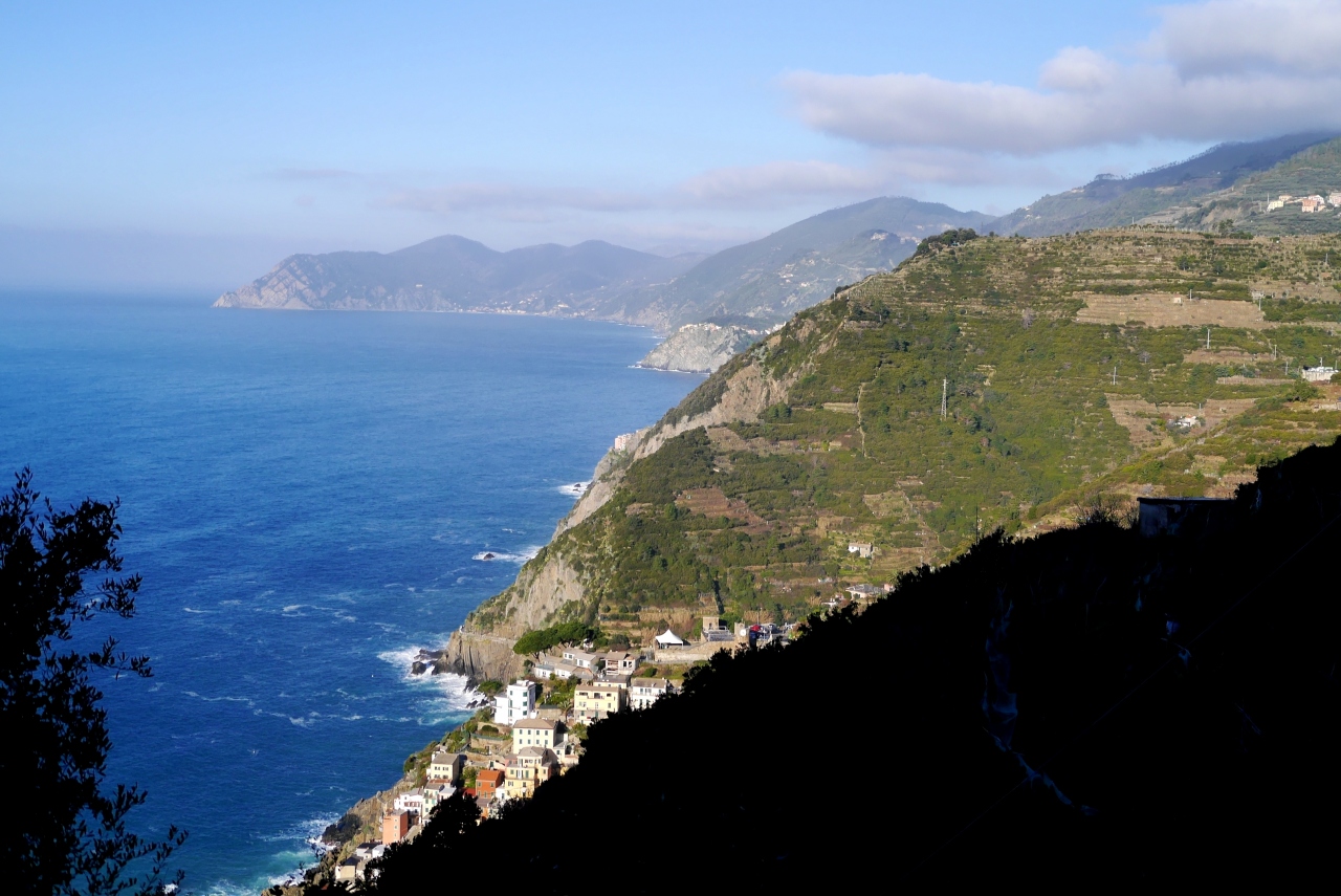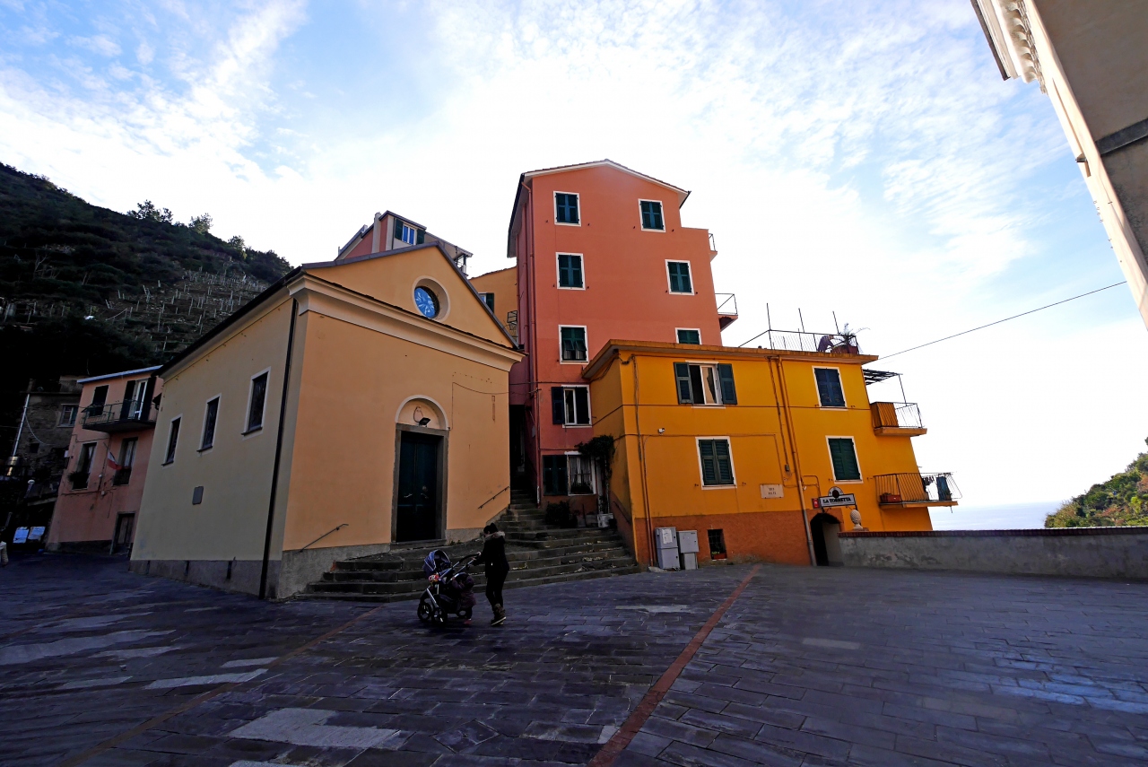 Cornigliaの駅から,バスがあるが本数が少ない.歩くと365段の階段を上がることになる.なかなかの路だ.町は丘の上.チンクエテッレでは唯一海に面していないが,別の階段を下りていくと港がある.2つの教会(聖ピエトロ教会,聖カテリーナ教会)がある.景色がよく(サンタマリア展望台,要塞の跡),残念ながら曇って居た日だが,Monterosso,Vernazzaの一部,Manarolaがよく見える.チンクエテッレの街のうち一番行きにくい街だが,よい街だ.