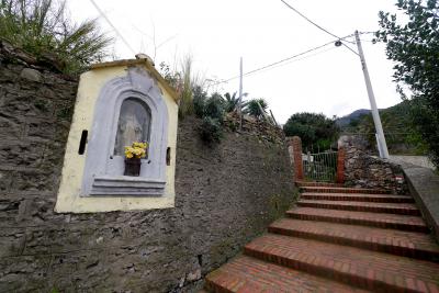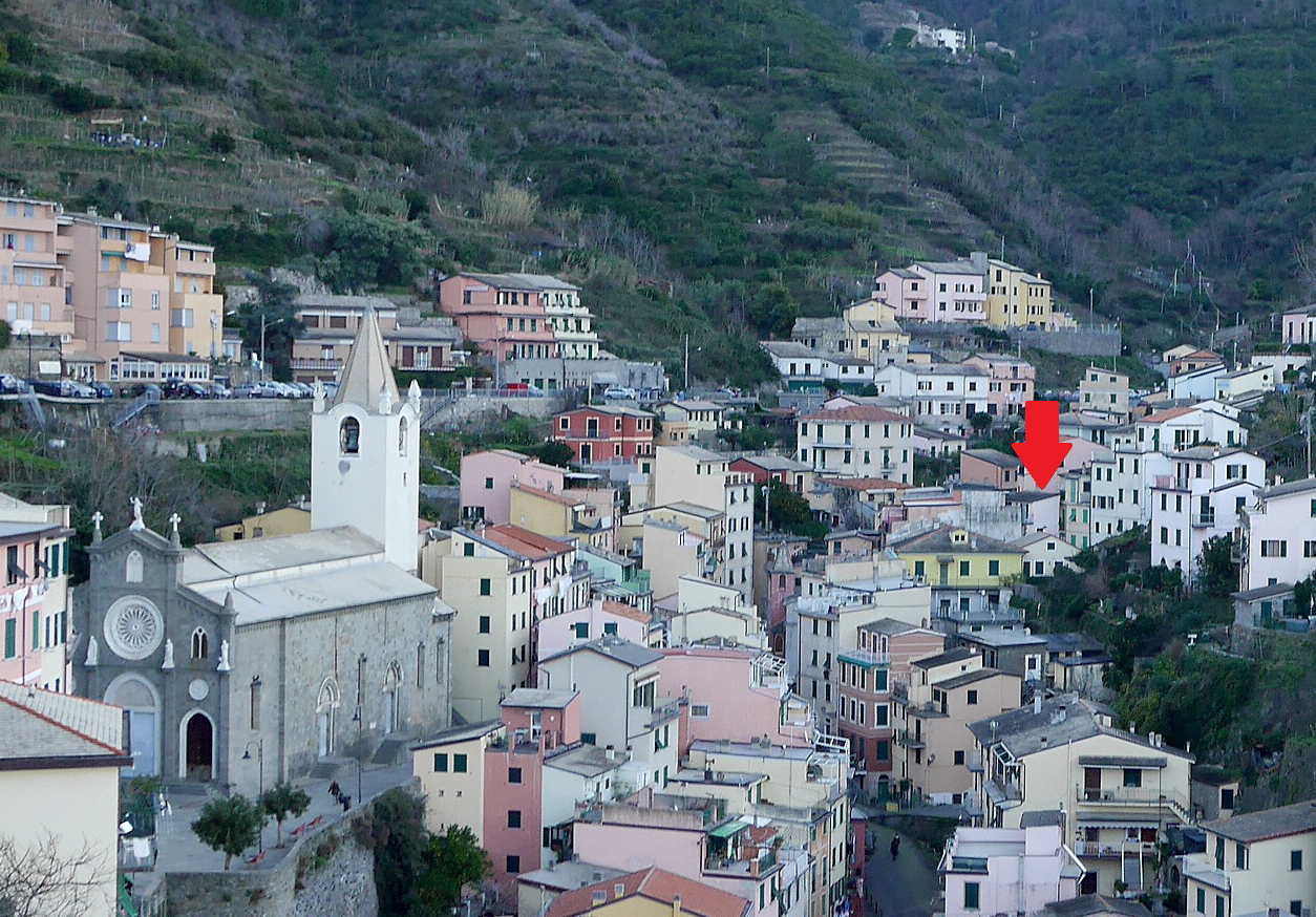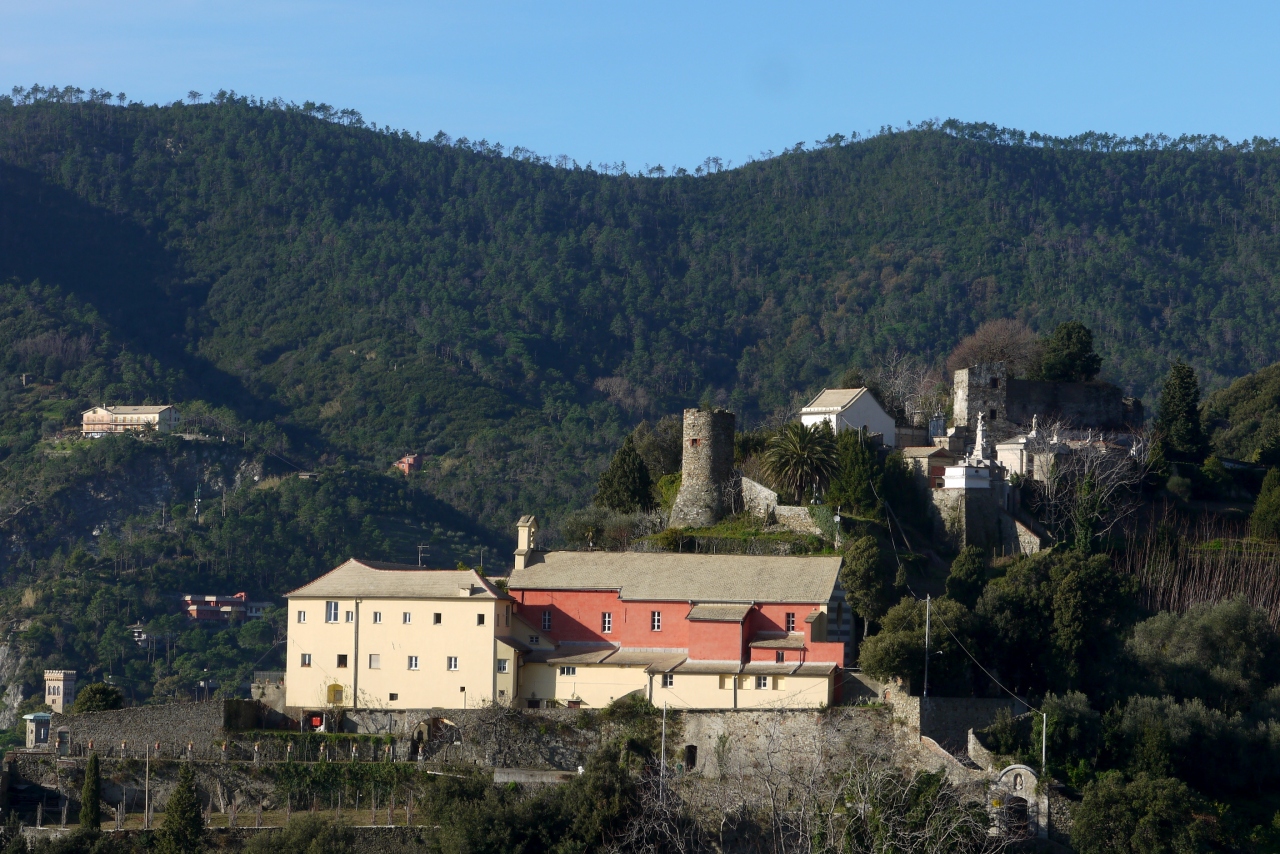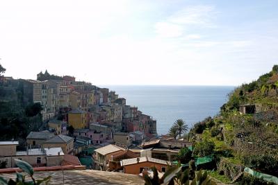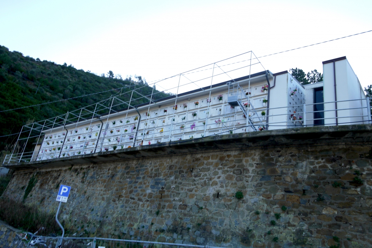 リオマジョーレの街の中のColombo通りから,S.Maria Assunta礼拝堂の横から上がる道か,Loca通りの階段を上っていくと,10分ほどで墓地に着く.このあたりからの景色が最高.Manalora,Corniglia,Monterossoの街も見える.Riomaggireの街も見下ろせ,海もきれい.私たちはレンタカーで行ったが,町からも登れるので,絶対のおすすめ