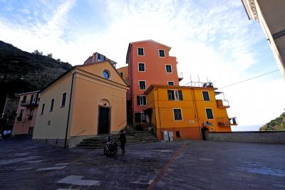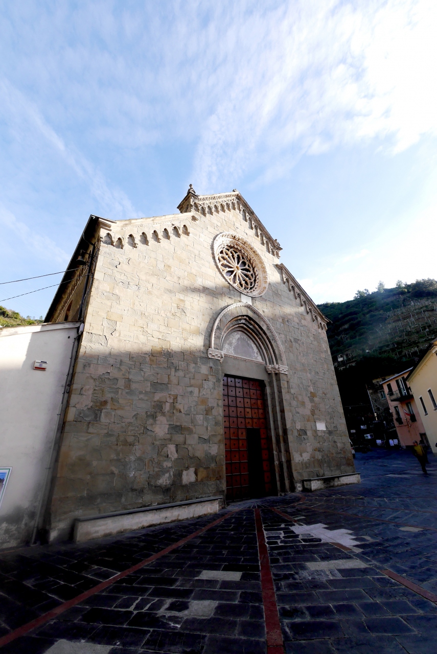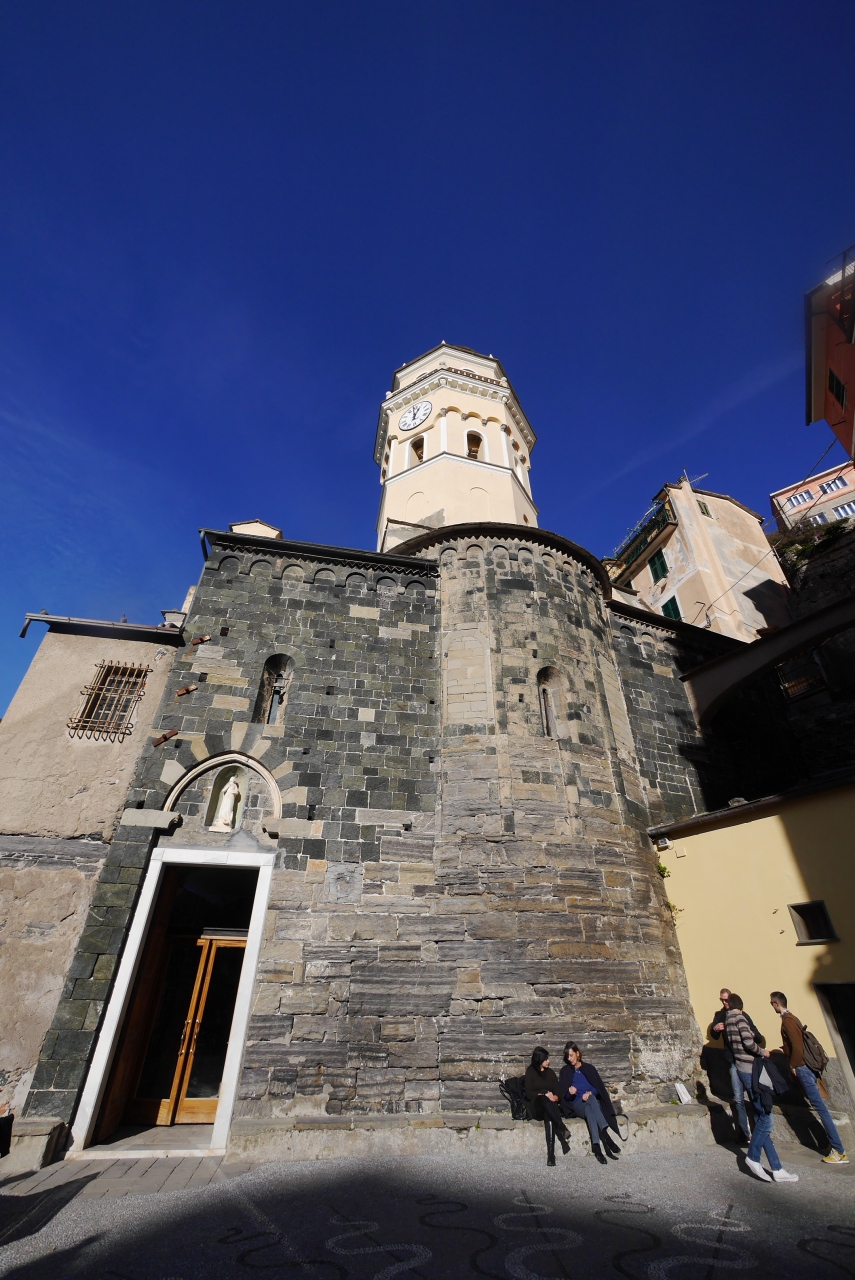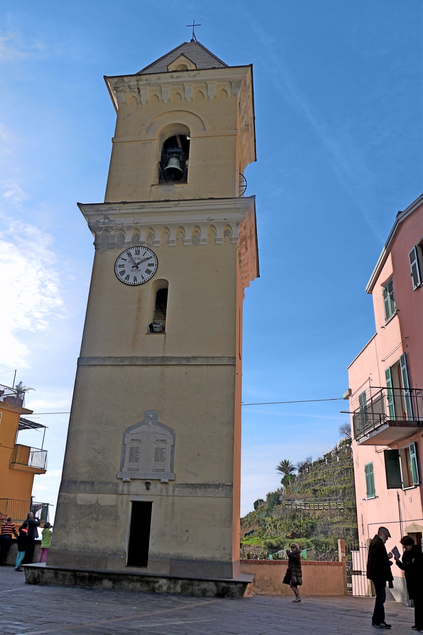 Manarolaの高台に鐘楼とともにある.14世紀以来の教会.中は普通の教会だが,この屋課題の広場,Innoxenzo ?広場からの街の景色がいい.鐘楼も後から取り付けた時計がずれているが趣はなかなか.少し急な坂だが行ってみる価値はある.駅から徒歩10分弱