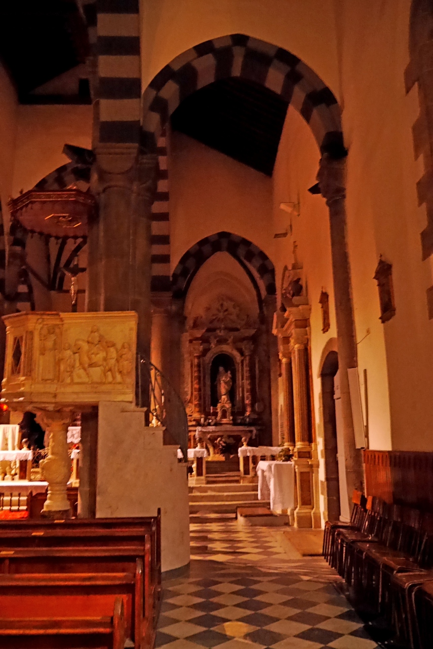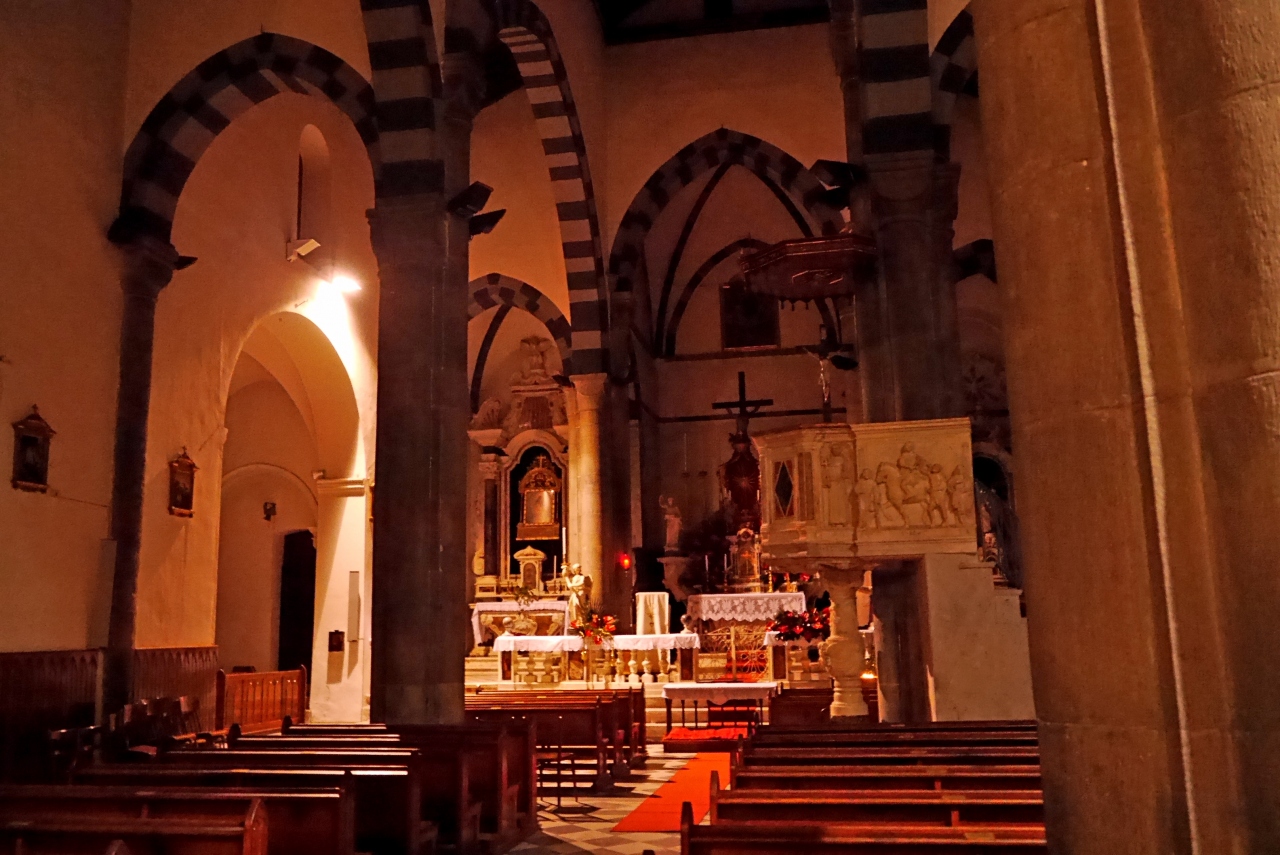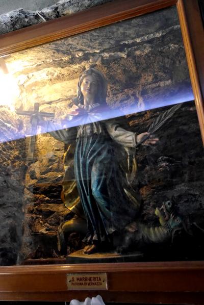 聖マルガリータ教会は石造りの荘厳な教会.窓から見える港の景色が美しい.海に向かい海に映える.中には聖マルゲリータが龍から逃げ出せた像もある.民間信仰とキリスト教の間の聖者だ.十字架の道行も掲げられていた.五島の教会が懐かしい.この教会は港に映える教会として最高だろう.Vernazzaのランドマーク的教会だ