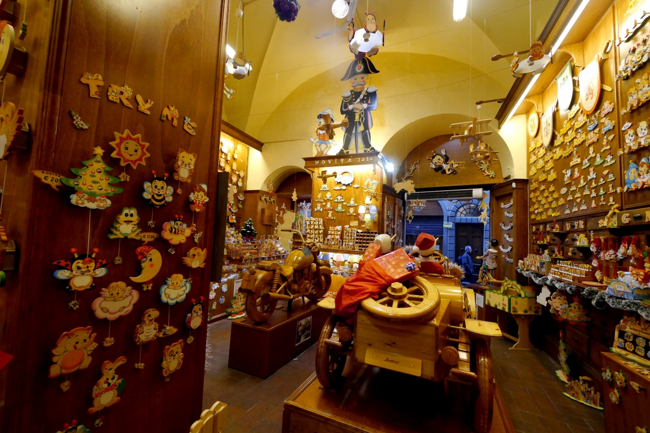 Signoria広場の一つ北のCondotta通りにある.この住所は前のもののようだ.ピノキオを始めイタリアの木工のおもちゃがいっぱい.懐かしい雰囲気だし,大人もかわいいのでほしくなる.渋谷にも姉妹店があるがぜひ本場のイタリアで買っていきたいところ.