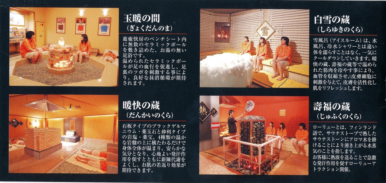 こころの湯,「フィンランド式サウナ」なるものがあって,オンドルルームなどもあって「遊癒快房」といって600円の特別料金で入ることができる.ちょうど1800から「フィンランド式サウナ」のパフォーマンスがあって,入った.しかしこれがフィンランド式と思われては困る代物.たしかにフィンランドでは,乾式サウナの石に水をかけてloylyという蒸気を出すことは普通だが,たくさんの人にタオルで熱波をおくることなどしない.人によってtuosku香料を買ってきて水に混ぜて香りを楽しむことはあるが,まあ「刺身のつま」みたいなもの.むしろ白樺の木Vihtaで体を叩く.またSavusauna煙サウナもある.全く違うものをフィンランド式といわれると私はとまどってしまう.