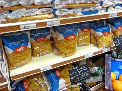 Riomaggioreは小さな町でスーパーはない.CoopのストアがColombo通り沿いに2軒ある.なんでもそろうし,ビールやワインも安い.Coopワインも売っている.営業は午後やっていないので注意.午後5時に再オープンし7時までやっているのでその時間に買うといい.