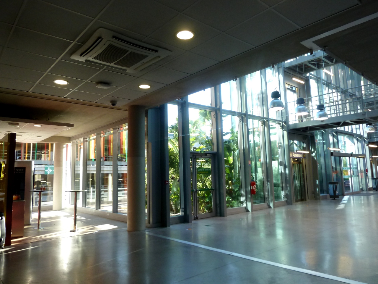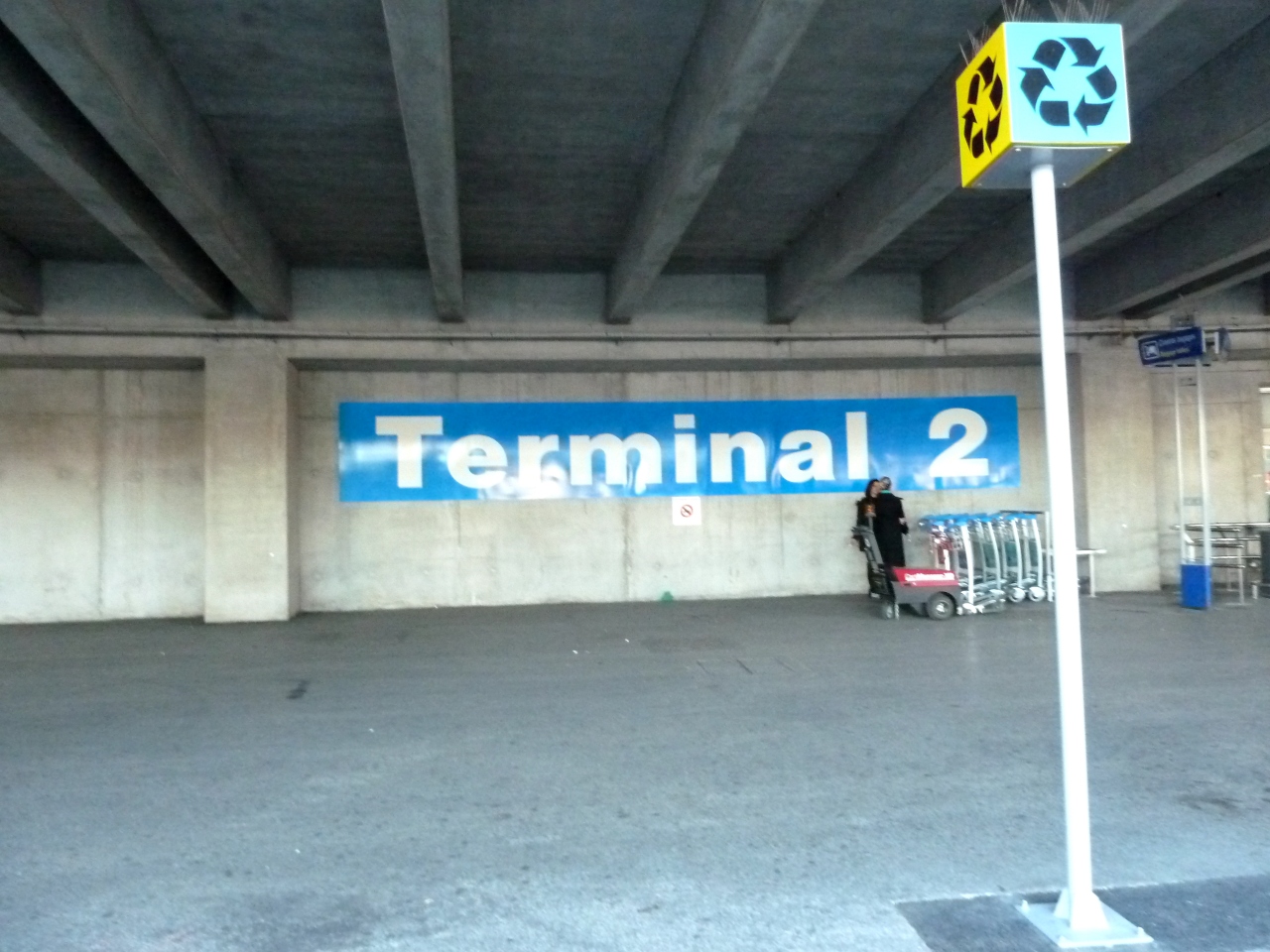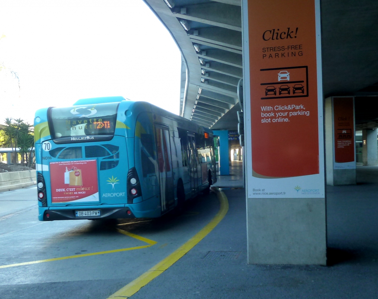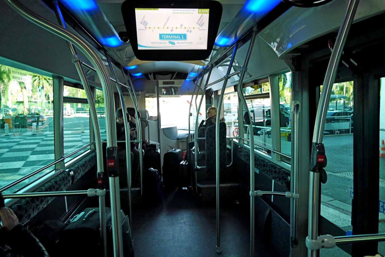 コートダジュール空港にはターミナルが二つある.第二にメインのエールフランス,フィンエアー,アリタリアだが,ルフトハンザ,オーストリア,スイス,SASなどのスターアライアンス,エミレーツ,BAなどは第一ターミナルとなる.レンタカーセンターは第二ターミナルである.また空港ホテルのPark Innは第一から第二に行く際のP6で降りると便利(円状に運転しているので,第二からは第一を通った後にP6がある).早朝夜間は10分おき,日中は8-10分おきなので便利