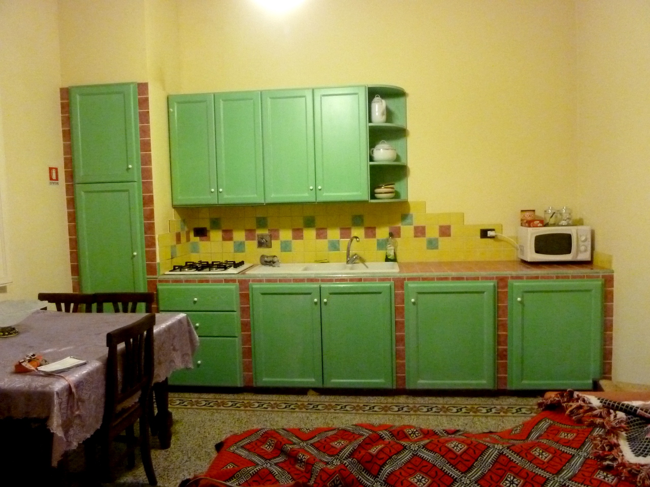 部屋は良く,キッチンも包丁は切りやすく,食器もまあまあそろっている.電子レンジ冷蔵庫もありアパートしてはとてもよい.スーパーも近く.フィレンツェに暮らすように泊まることができる.