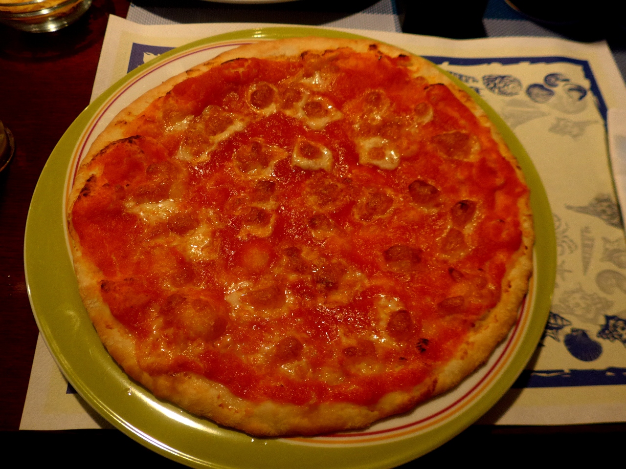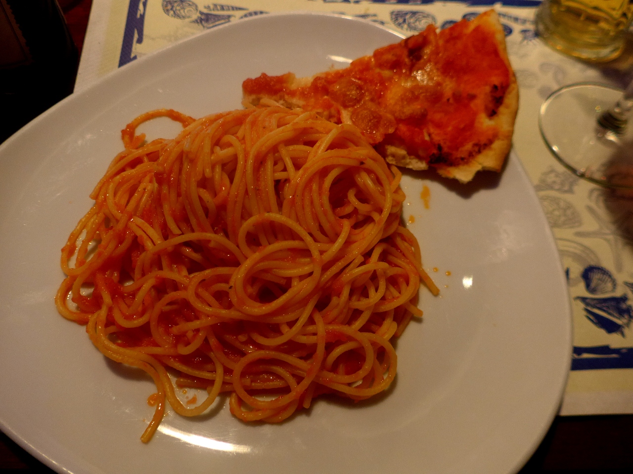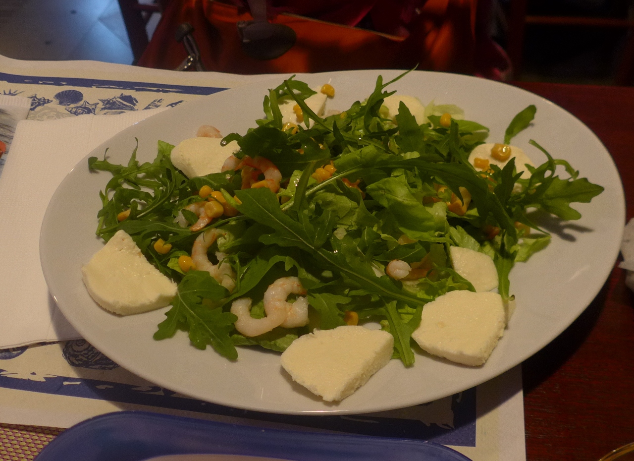 港の前のBar Corsaroというレストランが開いていた.入ってみてなかなかの正解.ワインも安くておいしかったし,ピザもスパゲティも素材を生かした素朴な味で食べやすかった.デザートはバーらしくお酒が入っていた.皆で食べて飲んで82.8ユーロ!一人27ユーロ強.安かったよね!お酒も安い.ワインも30ユーロ以下,カクテルもある.港の雰囲気も良く入ってよいレストラン