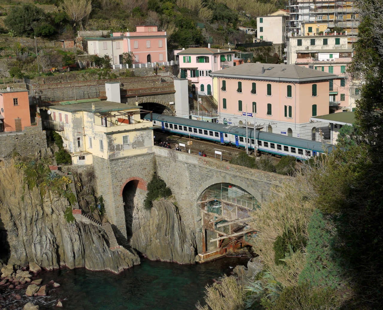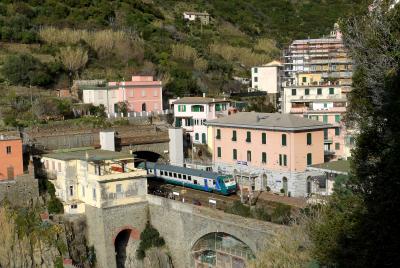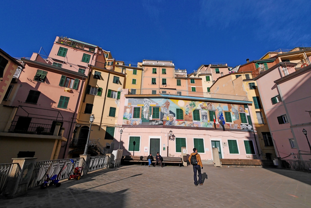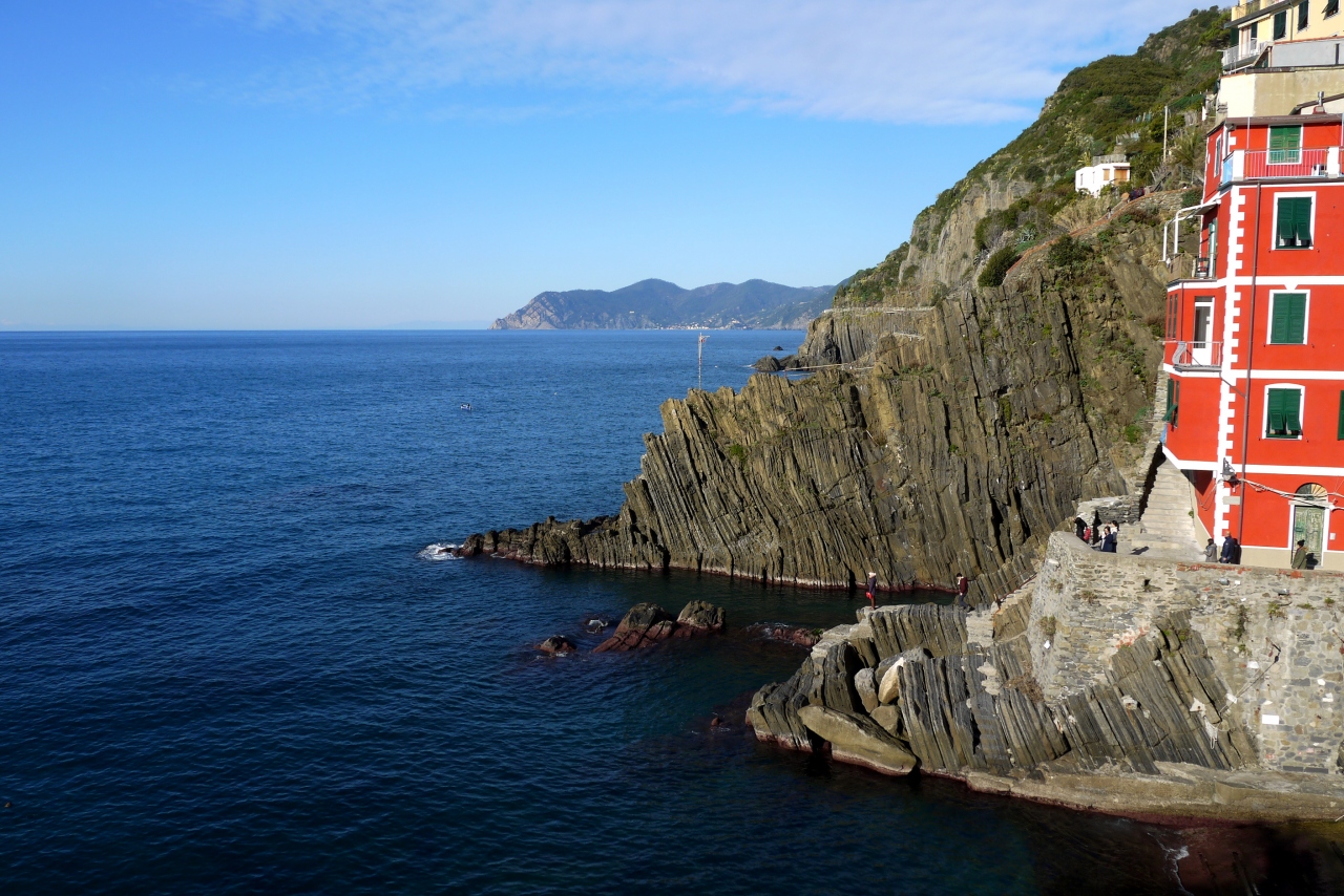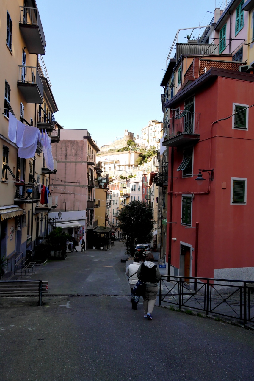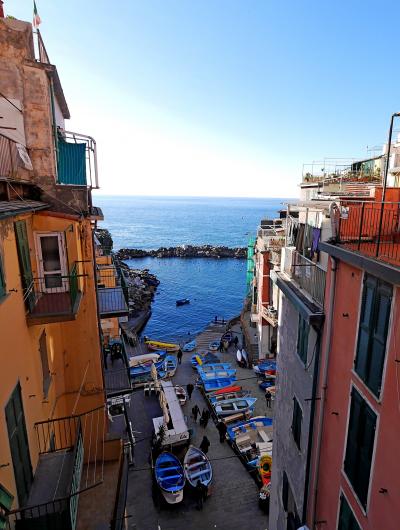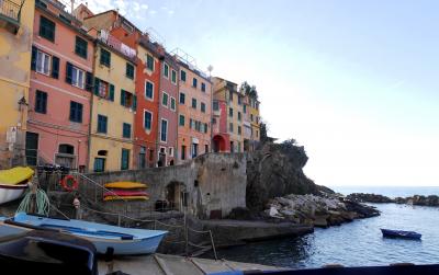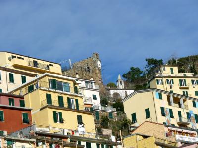 Riomaggioreはチンクエテッレの街の中で一番La Speziaに近い街だ.駅から降りたらトンネルを越えて港へ.港から南の海岸まで忘れずに行くこと,コロンボ通りを上り,マリアアスンタ教会まで登り(ここから先は駐車場),左の坂を越えて,サンジョヴァンニ教会,城へいくといい.そのあと駐車場になっている高台のSignorini通りからの眺めを堪能した後,城沿いの遊歩道を通って駅に戻るとよい.ゆっくりで1.5-2時間ほどだ.健脚は階段を上りClmiteroの方へ登ると町が一望できる.まず海岸を忘れないこと!
