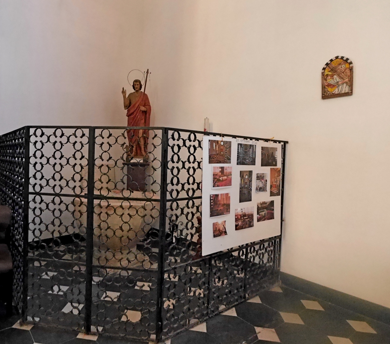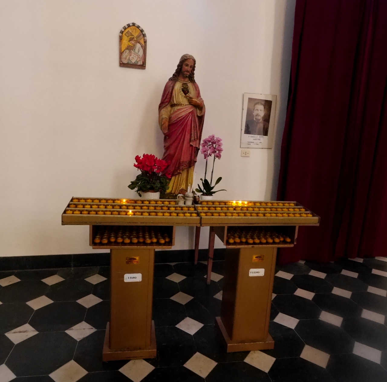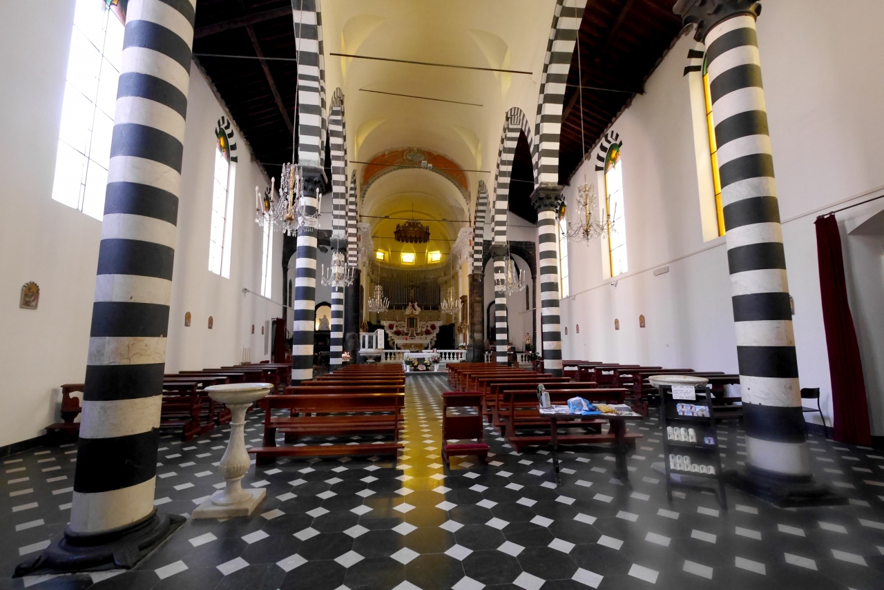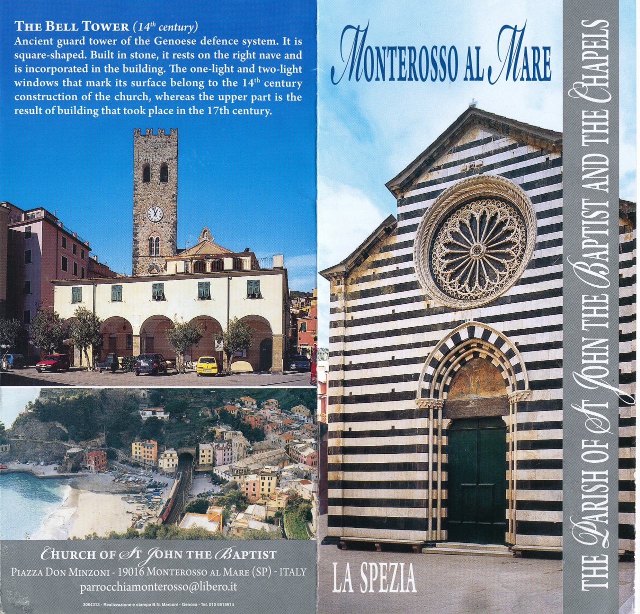 Monterossoの13世紀から続く古い教会.古い鐘楼も印象的だしゼブラ模様もなかなかと思う.隣の死と祈りの礼拝堂にはたくさんの亡くなった人の写真が飾られている.この村の古い写真が多いので町の歴史もわかる.きれいな街に古い教会.とても印象的だ