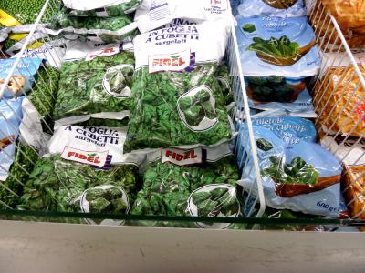 宿泊したVillaの近くのスーパー,品ぞろえは豊富だし安い.他では1.5ユーロから2ユーロしたモレッティの缶ビールが4本で3.04ユーロ.他のものも非常に安かった.あとの分の食料ももう少しここで買っとけばよかった.野菜は他の国と同様で,ビニールにとってはかりで品物の番号を入れて,計量後のシールがでてくるのでそれを貼る方式