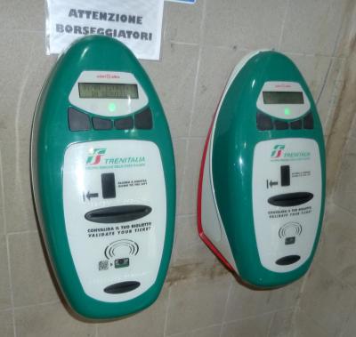 チンクエテッレカードは隣のインフォに打っている.切符を買ったらValidationを