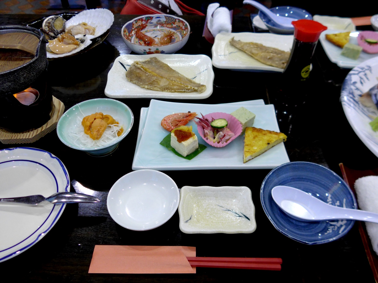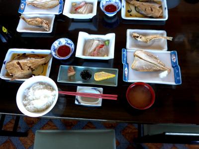 一泊二食付11000円だった.タオルなどセットで1000円,暖房費300円.最初にチェックインで迷う!レストランに行くこと,2階へあがると人がいる.風呂は漁船の中でびっくりしたが,男女共用なので女性は入りにくい.食事はこれでもかというほど魚が出てくる.魚好きには答えられないと思うが,ちょっと多すぎるかなあ.鮑もおいしかったし,エビの踊り食いまであった.部屋は庄屋の建物を改造したものとのことだが,広くて寒々しい.トイレと洗面は共用.コストパフォーマンスは良いが,多少魚を減らしても,風呂と部屋の改善をしたほうが評判が上がるかなと思った.皆同じことを楽天トラベルに書いているが,改善する意思がないようだ.魚で勝負!!という意地だろう.部屋とサービスに我慢できたら,魚のごちそうが待っているという感じ.