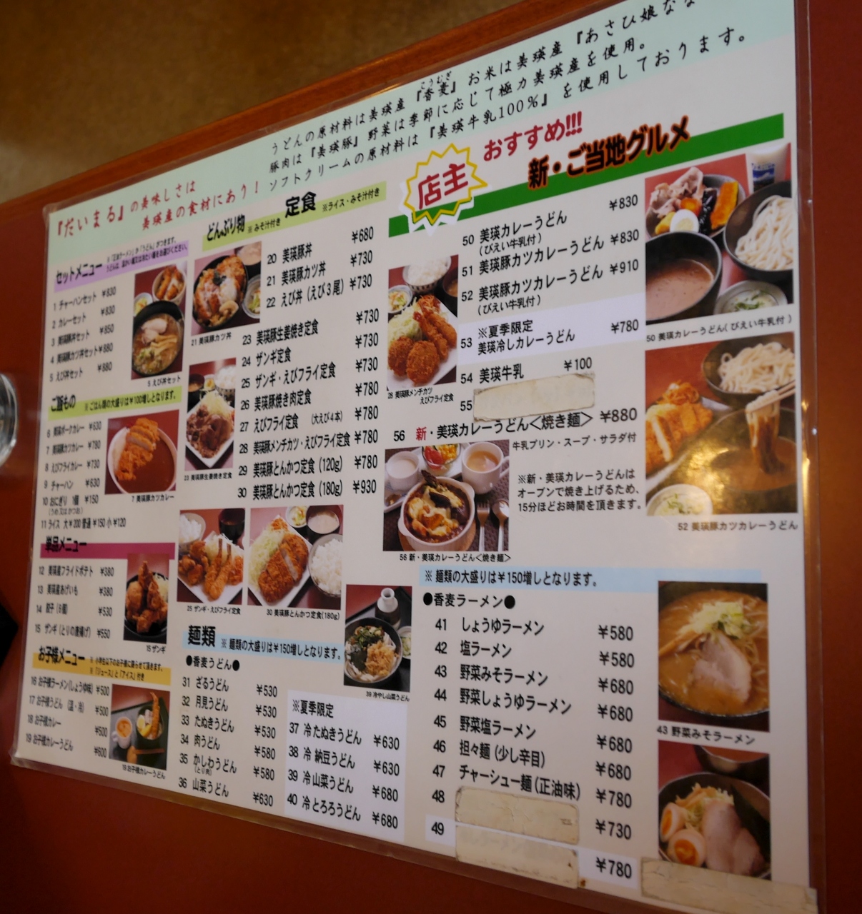家人は豚丼680円 私は美瑛カレーうどんにするつもりがなぜか美瑛豚カツカレーうどん830円をたのんでしまった.牛乳付きで910円.カレーにこくがありおいしかった.かつもわりとおいしかった.麺も稲庭風でカレーに合っていた.新ご当地グルメは新美瑛カレーうどん(焼き麺)とのこと.今度行ったら食べてみよう!