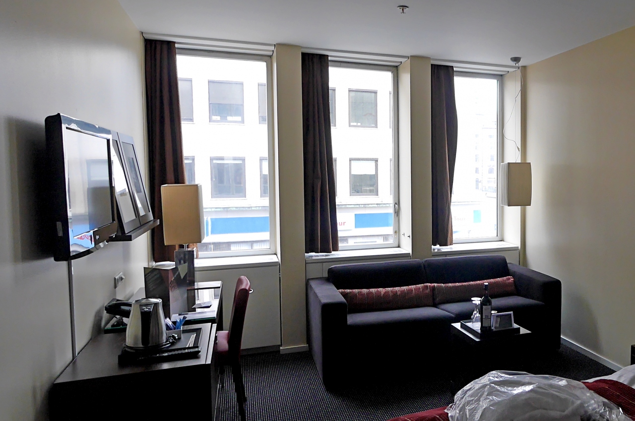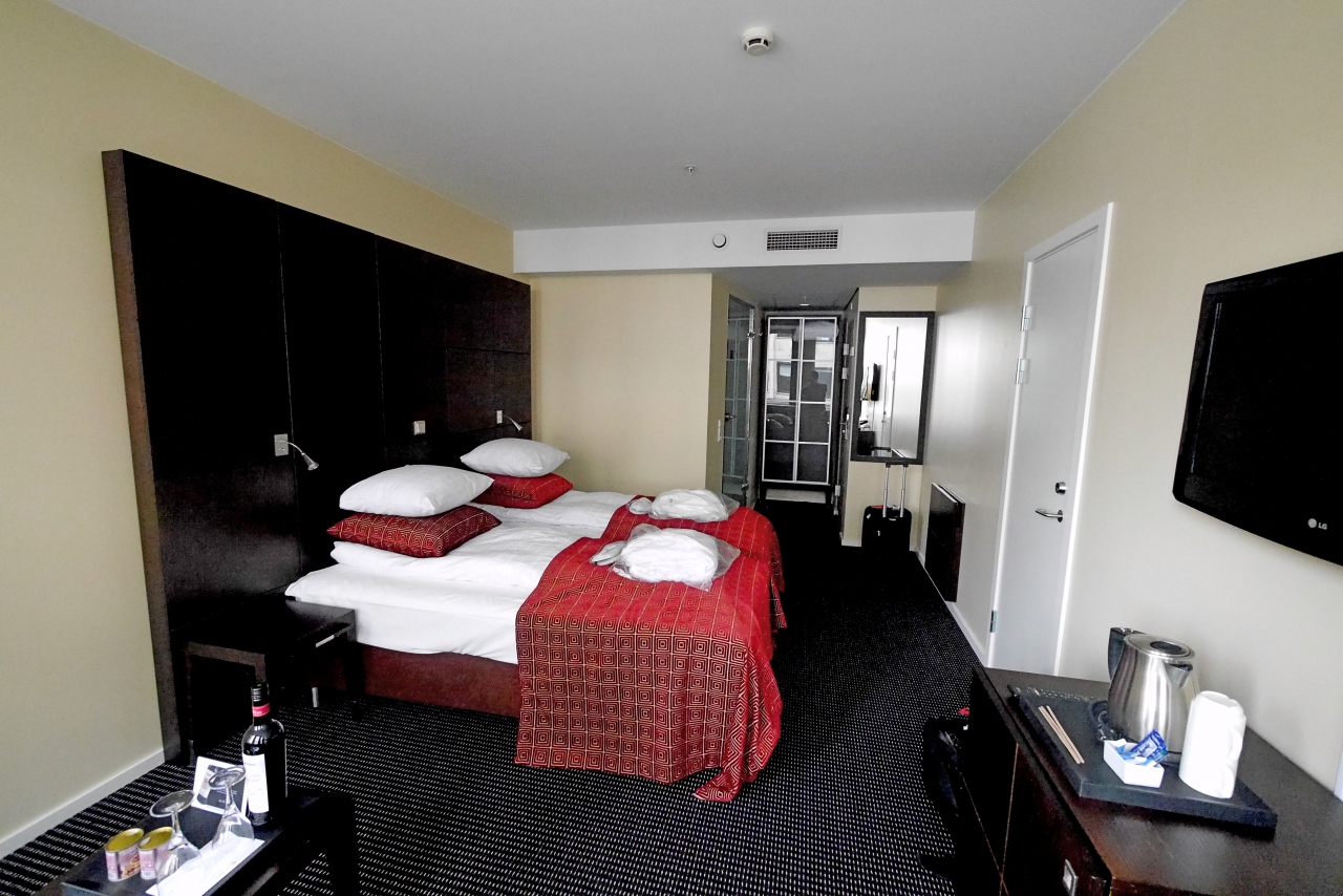 アップルワールド四つ星で20850円(アップルワールド四つ星).駅から徒歩8分と遠いが,市庁舎を目指して行って,そこの横の公園を通ると徒歩5分.バスタブも広く,ベッドも広く,くつろげるホテルだ.朝食も四つ星水準.Scandinavian Centerというコンベンションセンターに隣接する近代的なアメリカナイズされたホテル.デンマークのホテルは古いホテルが多いのだが,ここは新しくて気持ちがいい.おすすめ.