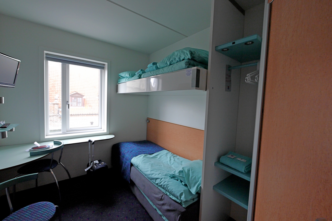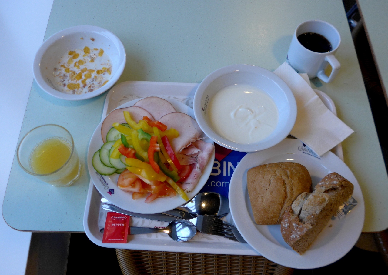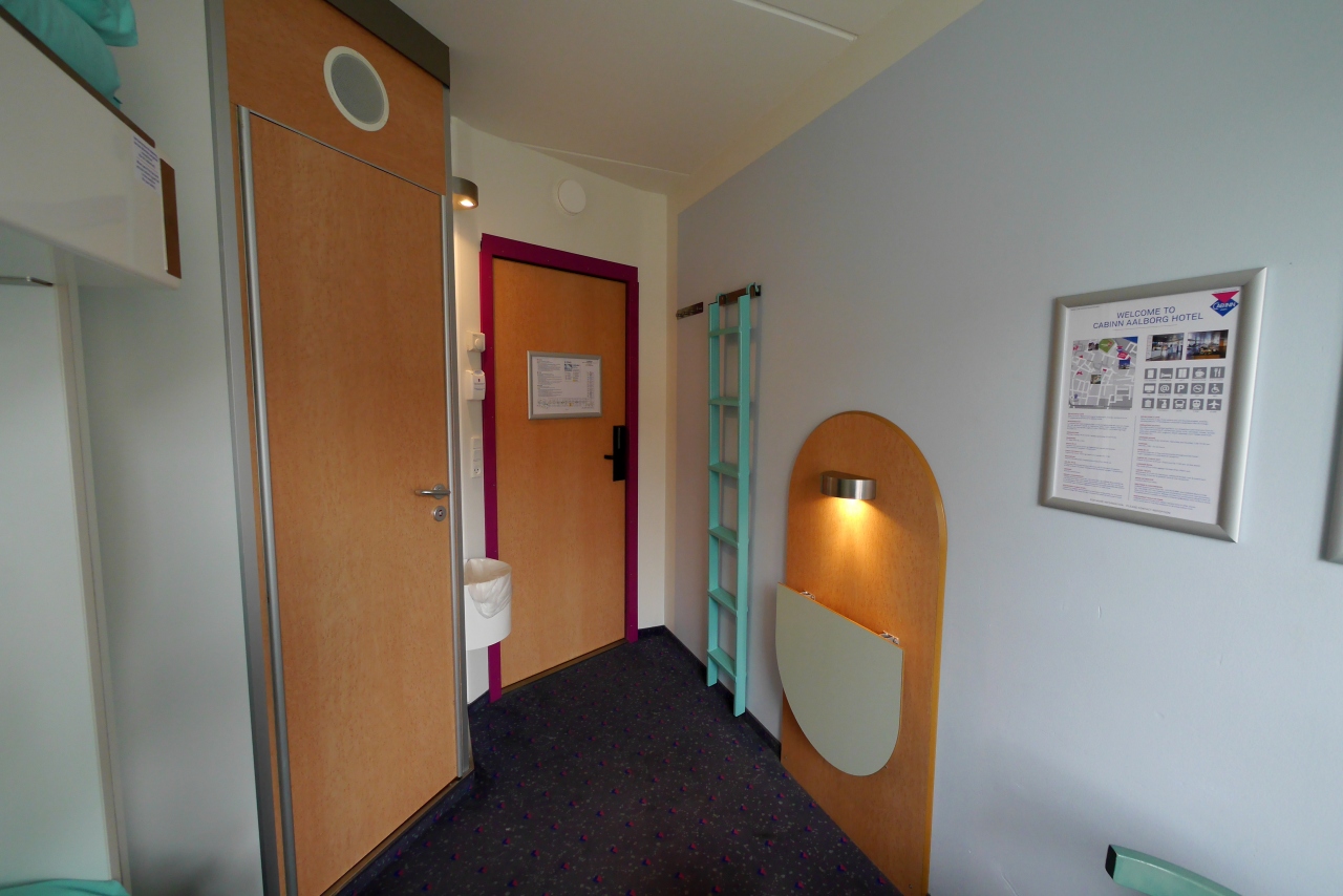 Hotel Cabinn Aalborg泊朝食付き11830円(アップルワールド,二つ星).デンマークでは破格に安い!部屋は船のキャビンのようだが狭苦しくはない,日本のビジネスホテルの方が狭苦しい.シャワールームは狭いが清潔!ベッドは寝やすかった.特筆すべきは朝食!ホットミールはないが,三ツ星ホテルと同等か,ホットミールがないことを除けば,四つ星に近いくらい..おすすめのホテルだ.