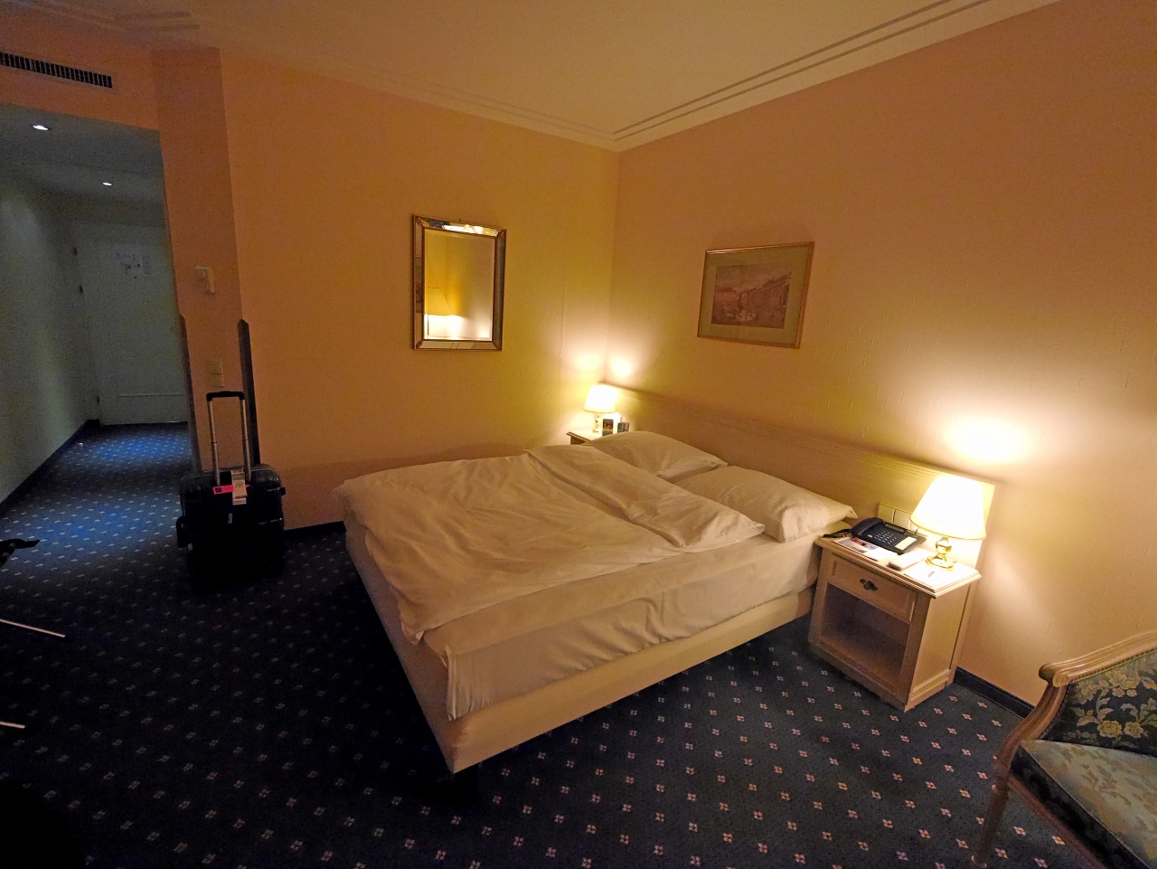 シングル朝食付きでアップルズホテルで18040円.部屋はシックにまとまり,バスタブも広い.寝やすいベッドで朝食も良い.空港から徒歩3分.ウィーン市内ののホテルは古いところが多く,もっぱらヒルトンだったが,ここも良い.特に乗り継ぎの際はお勧めのホテル