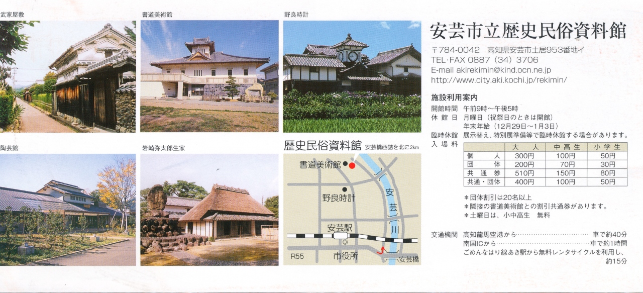 安芸城跡,城山の手前に存在.入場料300円.ちょうどひな人形を展示していた.ここの殿様である五藤家のひな人形も展示していた.五藤家コーナー,歴史・民俗コーナー,人物コーナーに分かれている.それなりには面白かったが,もう少し全体に歴史がわかる展示にしてほしかった.人物コーナーにしてもその人の業績の後ろにある歴史的背景をもう少し掘り下げた展示ならいいと思った.安芸の歴史を簡単に知るのにはいい.隣に書道美術館(いかなかった)