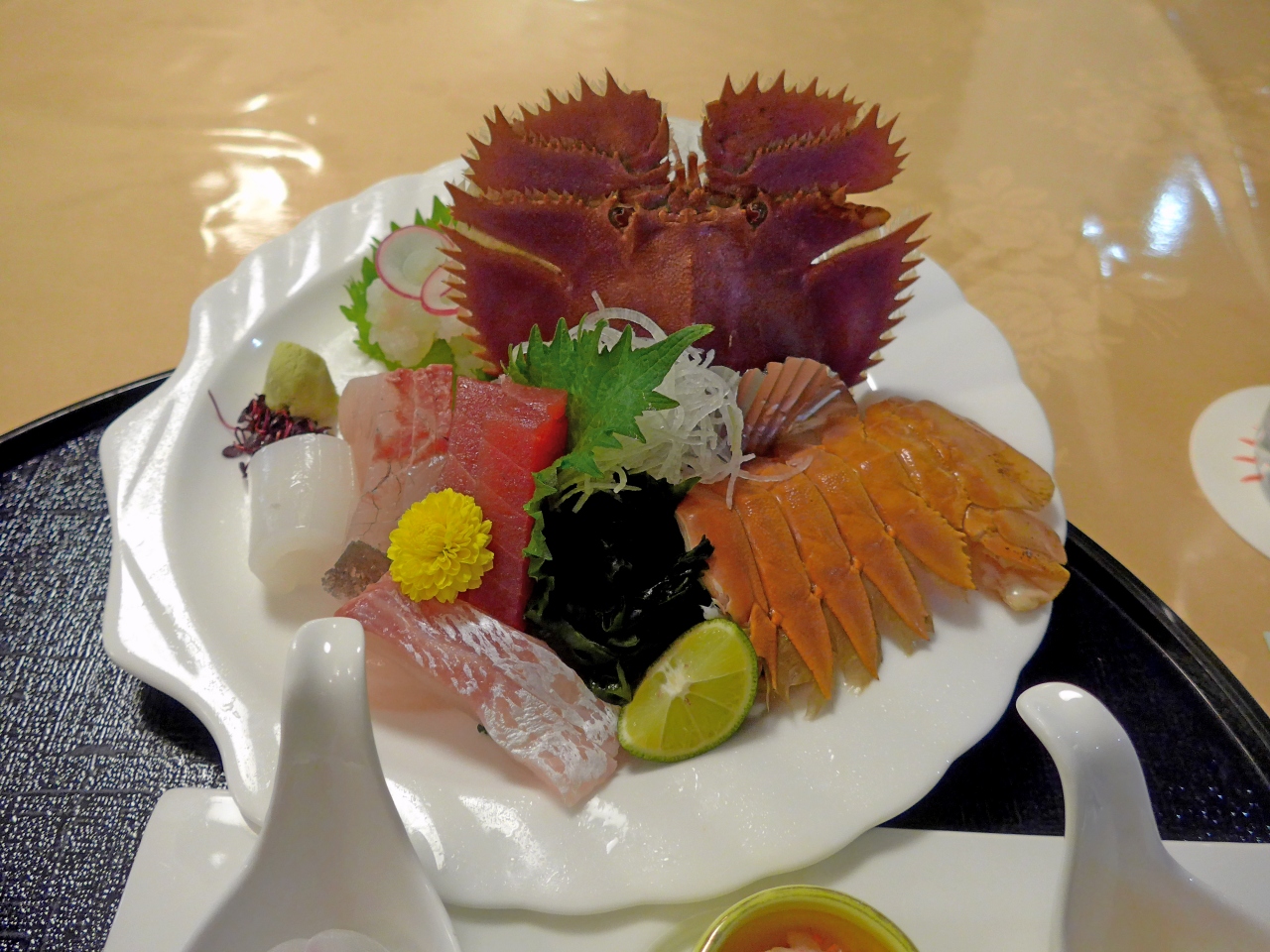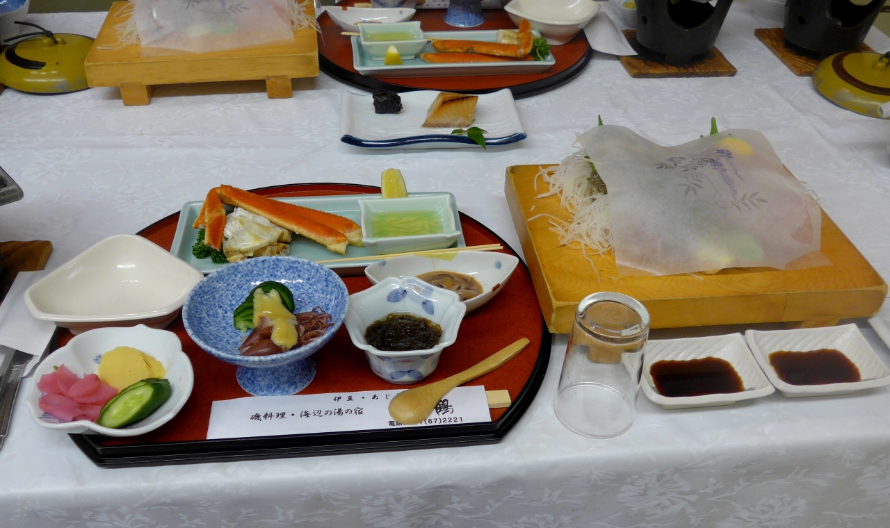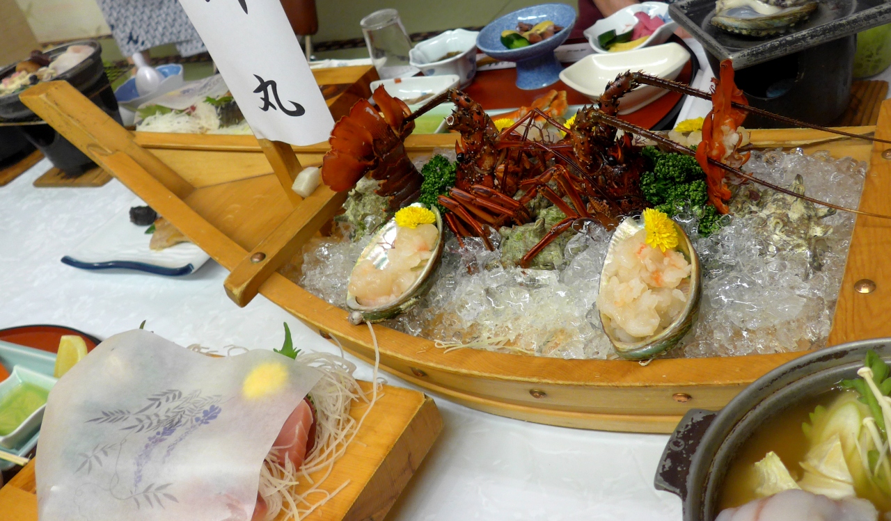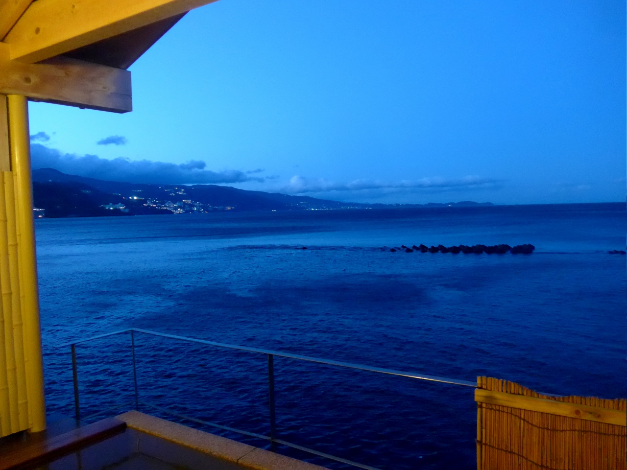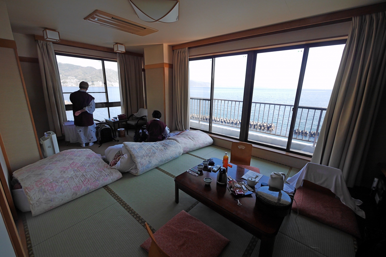 確かに3人一部屋で19500円,二人一部屋で22500円と高かったがそれだけの満足度は得られた.フィンランド人の家族を日本の伝統的な旅館に泊まらせ,日本料理をふるまおうと計画.部屋は2方向の窓が海に向かい,食事も鮑と伊勢海老という典型的な日本のごちそう.家族風呂は露天で海にかぶりつきと最高だった.他の部屋の景色はそれほどよくないのでここに泊まるなら,一番いい角の部屋を少々高くても頼むべきだろう.