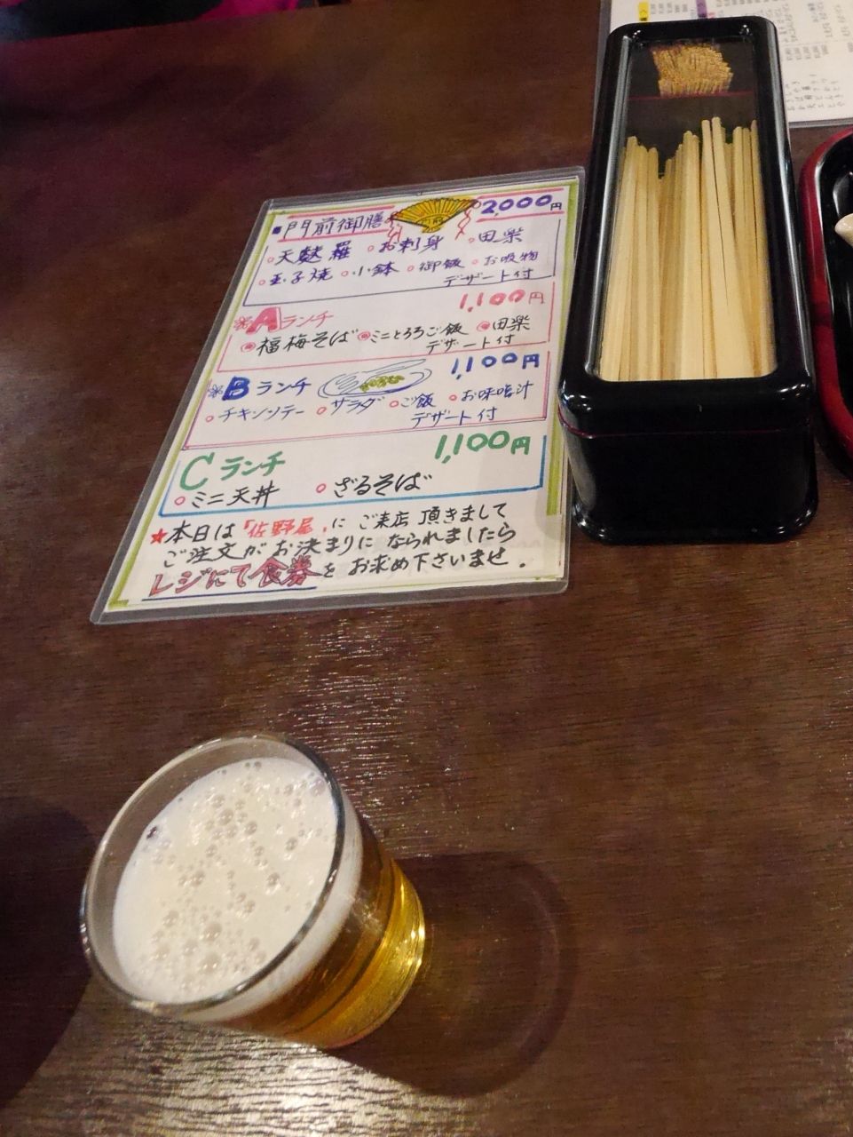 成田山新勝寺の前の佐野屋という食堂.食券で買う.ここまでなかなかちょうどいい食堂がなく歩いてきてしまった.ランチが1100円 私は福梅そば,とろろめし,田楽,フルーツというAランチを食べた.他にざるそばとミニ天丼,チキンソテーなどがあえう.観光一等地だし,おいしいというわけではないが,まあゆるせるかなというランチだった.